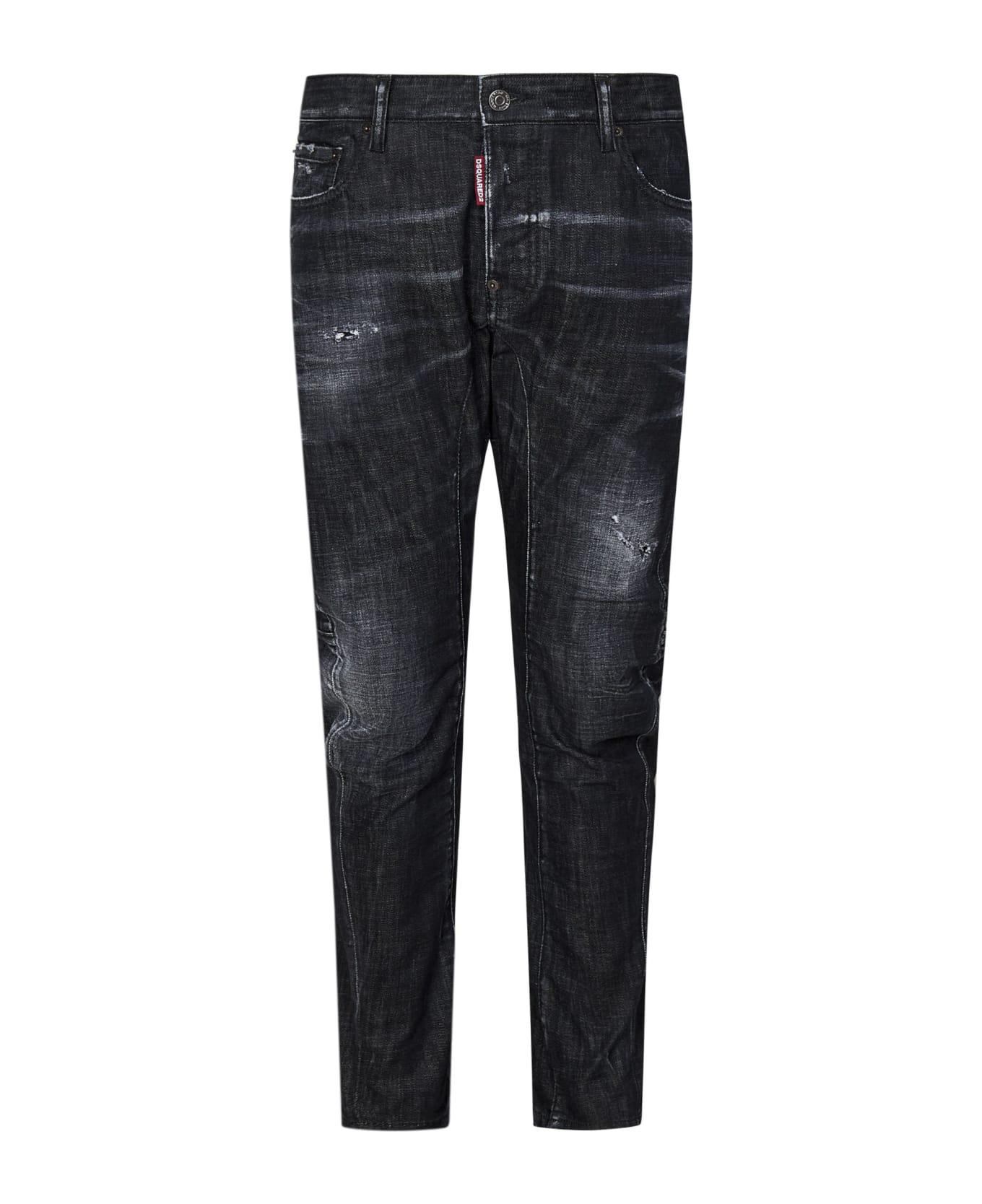 Covered Front Closure Belt Loops At Waist; Five Pockets Red Logo Label On The Front; Two-tone Leather Label Sewn On The Back Used Effect Wash With Distressed Details Contrasting Two-needle Stitching Slim Fit Color: Black 98% Cotton, 2% Elastane Made In Italy