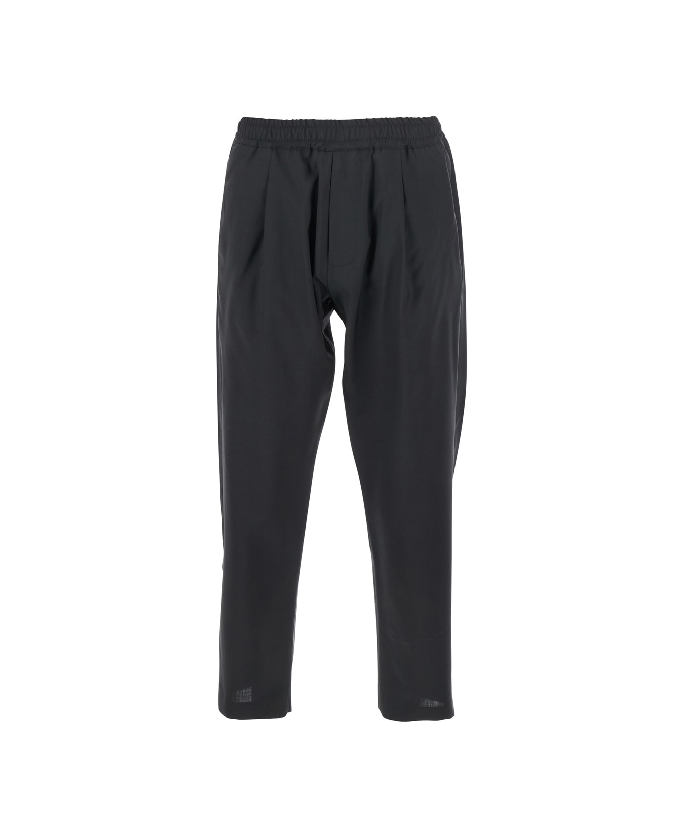 Black Pants With Elastic Waist And Patch Pockets On The Back In Wool Man