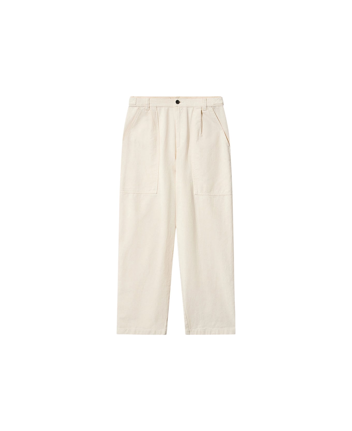 ecru cotton belt loops front pockets back pockets button closure
