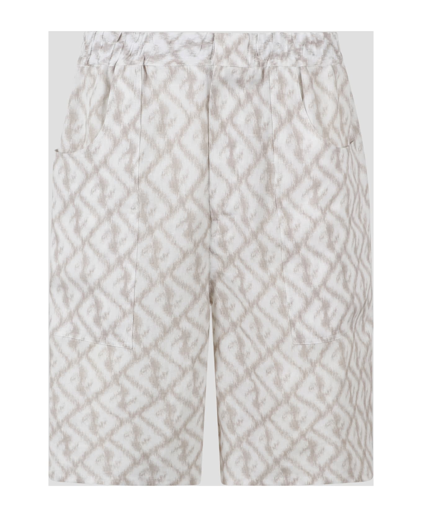 Fendi bermuda short, in linen with ikat-effect diagonal FF motif printed all over. - SS23