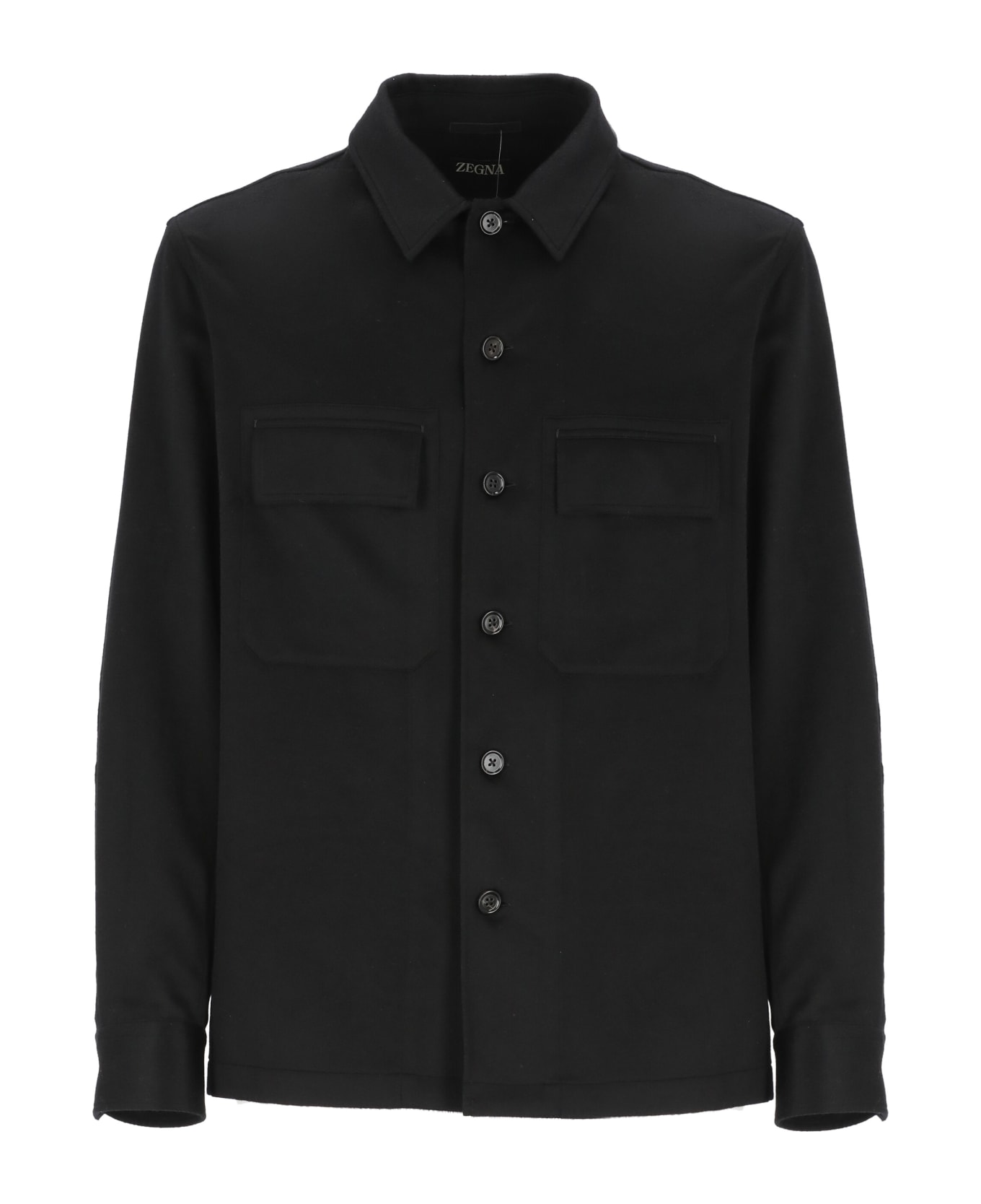- Black Zegna cashmere shirt for man - Collar - Long sleeves with buttons at hem - Two front flap pockets - Front buttons fastening Composition: 100% Cashmere