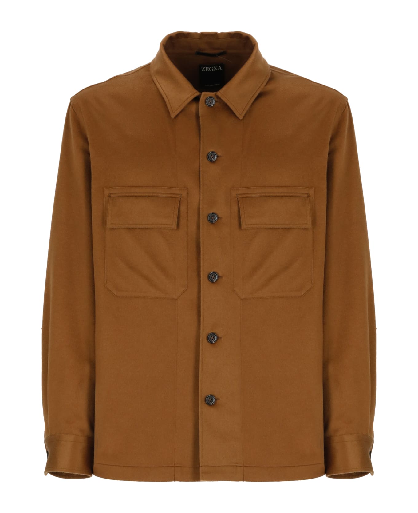 - Brown Zegna cashmere shirt for man - Collar - Long sleeves with buttons at hem - Two front flap pockets - Front buttons fastening Composition: Main: 100, 00% Cashmere | Lining: 100, 00% Polyester |