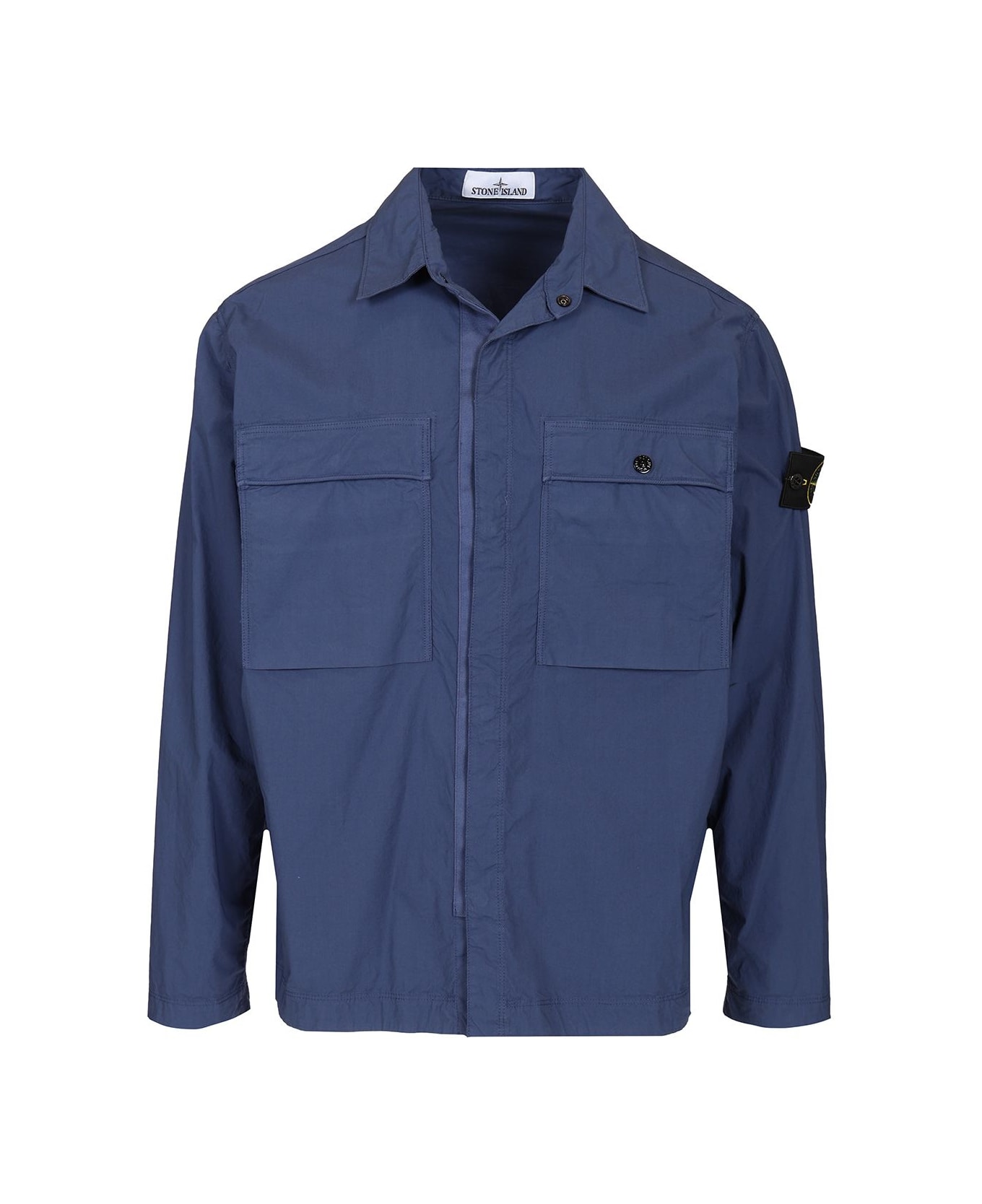 Two bellows pockets on the chest, with flap and snap button. Stone Island badge on the left sleeve. Cuffs with snap button. Snap closure hidden by cotton tape. Comfort fit Composition: 97% Cotone; 3% Elastan