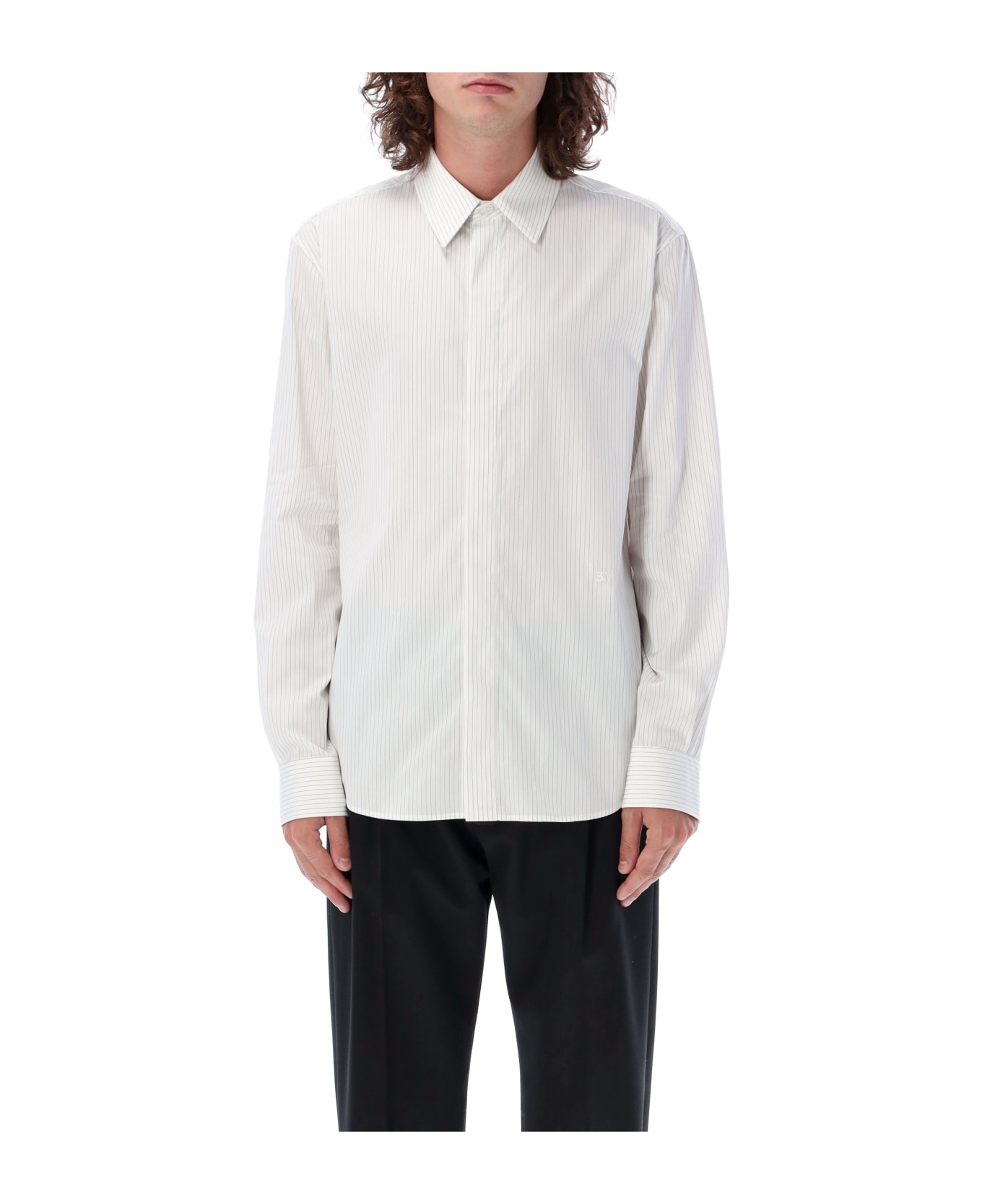 Shirt Mini Stripes By Bottega Veneta. Featuring: Pointed Collar Long Sleeves Concealed Button Closure Buttoned Cuffs Curved Hem Striped Print Model Is 1,90 M Tall And He Is Wearing Size 50