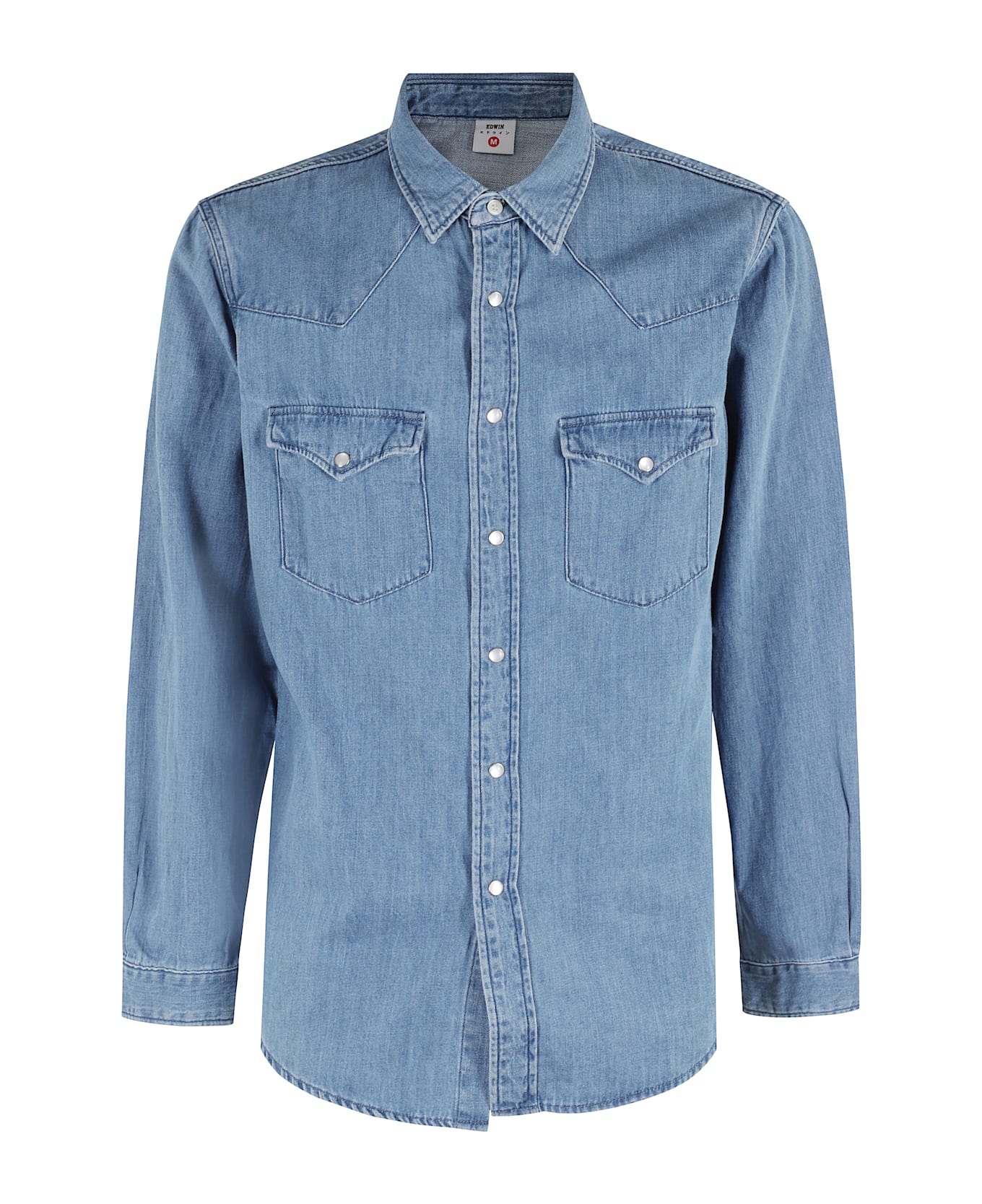 Western shirt - Edwin - Medium blue color - Classic collar - Long sleeve with cuff and buttons - Flap and button patch pockets on chest - Front button closure - Regular fit