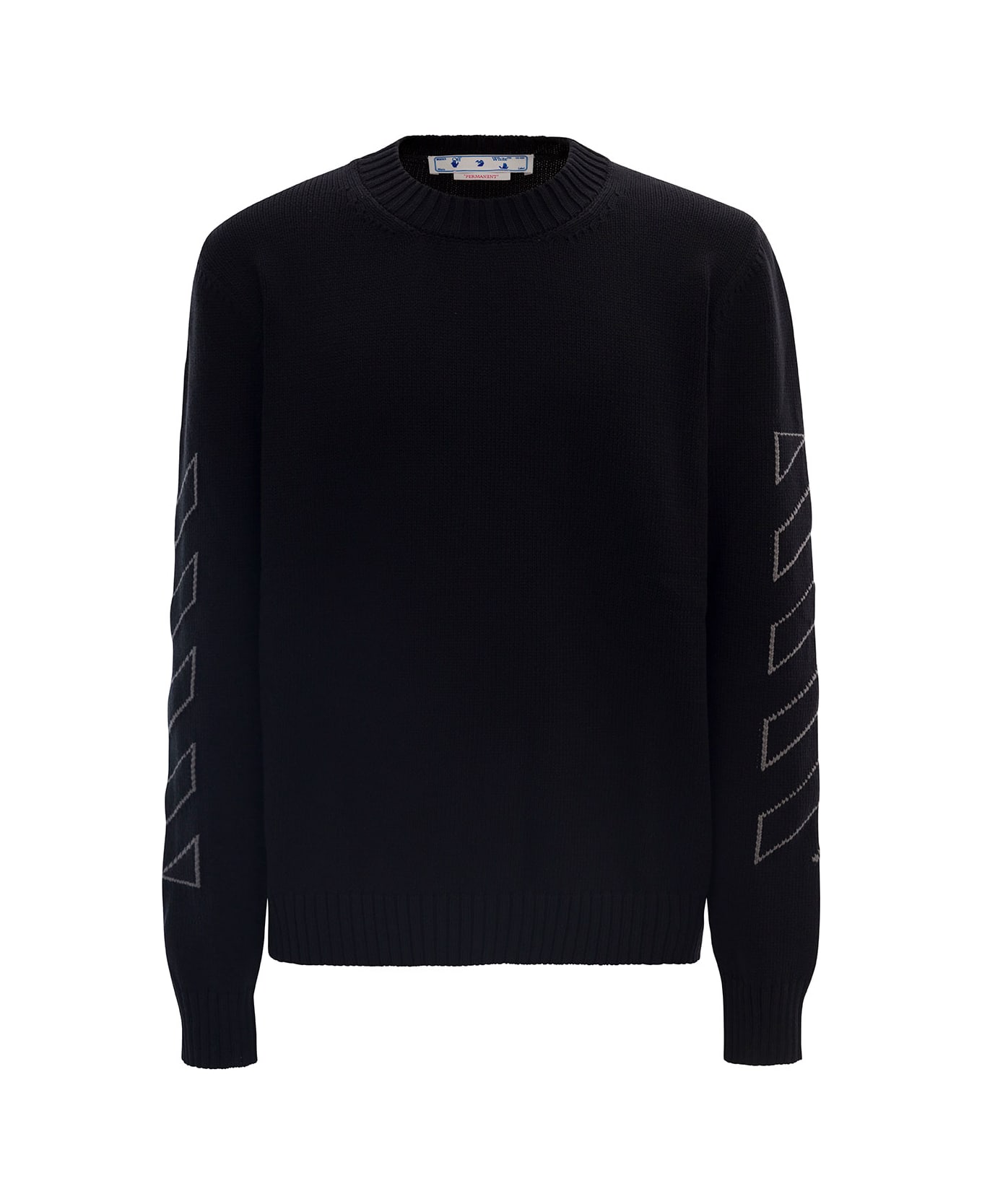 Black Crewneck Sweater With Intarsia Diag Motif Along The Sleeves In Cotton Blend Man