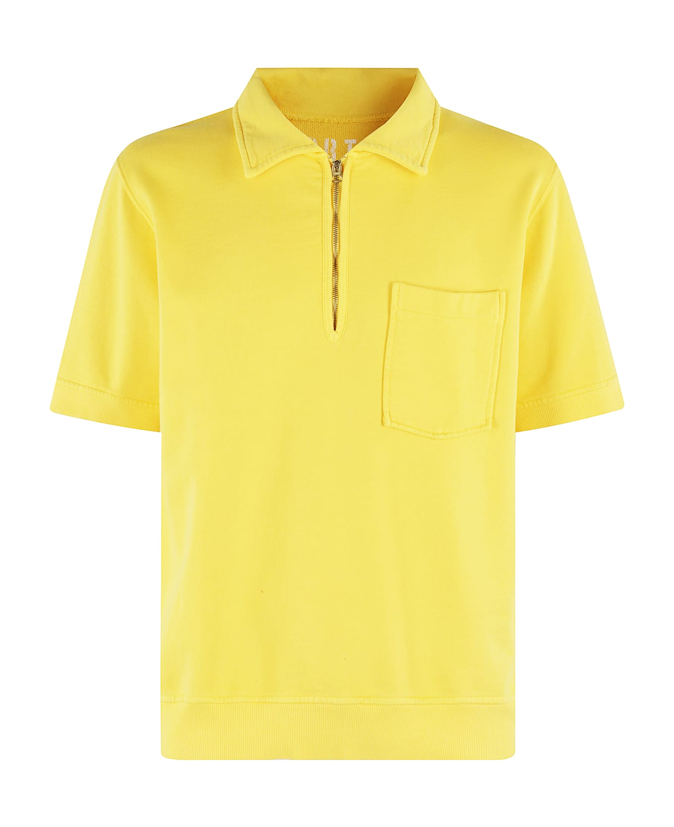 Yale sweater - Fortela - yellow color - zippered polo collar - half sleeves - plush cotton - ribbed trim - patch pocket - regular fit