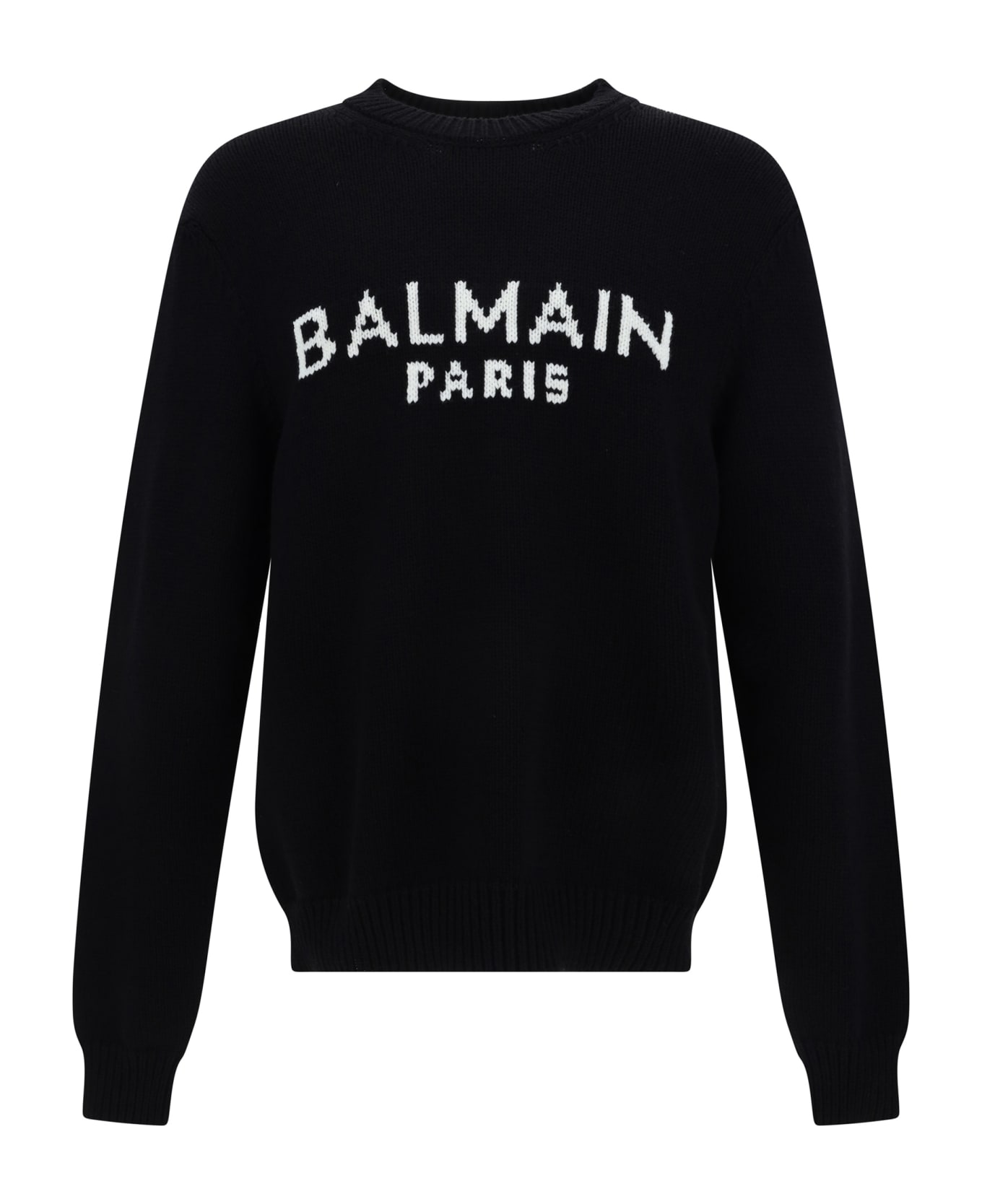 Wool sweater by balmain, ribbed crew neck, iconic brand monogram embroidered in contrast on front, ribbed hem, ribbed cuffs, monochrome pattern, regular fit. Composition: 24% % Polyamide, 76% % Wool