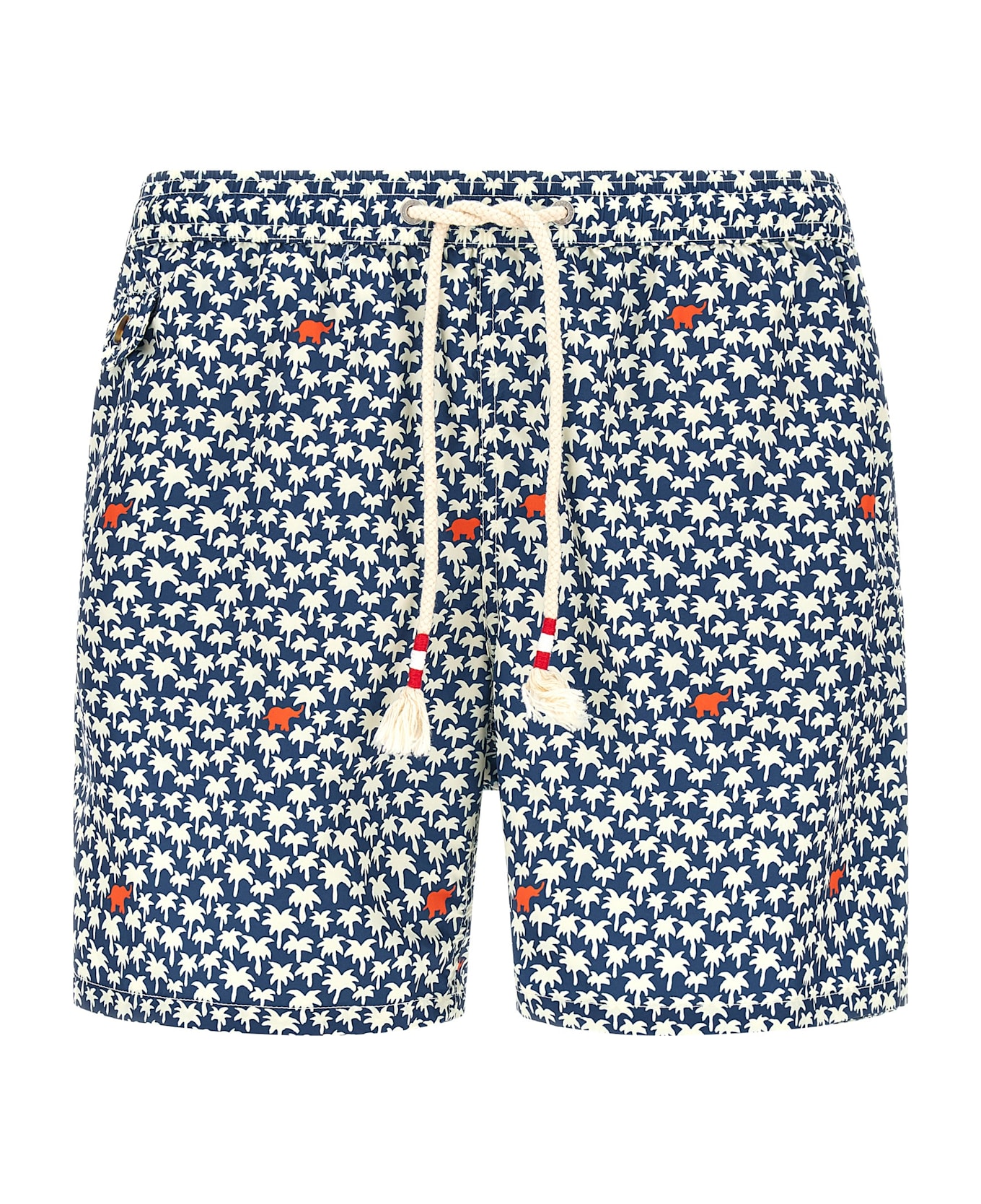 'Lighting' swimsuit in quick-drying 'El Palm' print light technical fabric with medium length, back logo patch, drawstring elastic waistband, pockets, side slits at the hem, inner mesh briefs. SUSTAINABLE: Product made from recycled polyester. Composition: 100% polyester