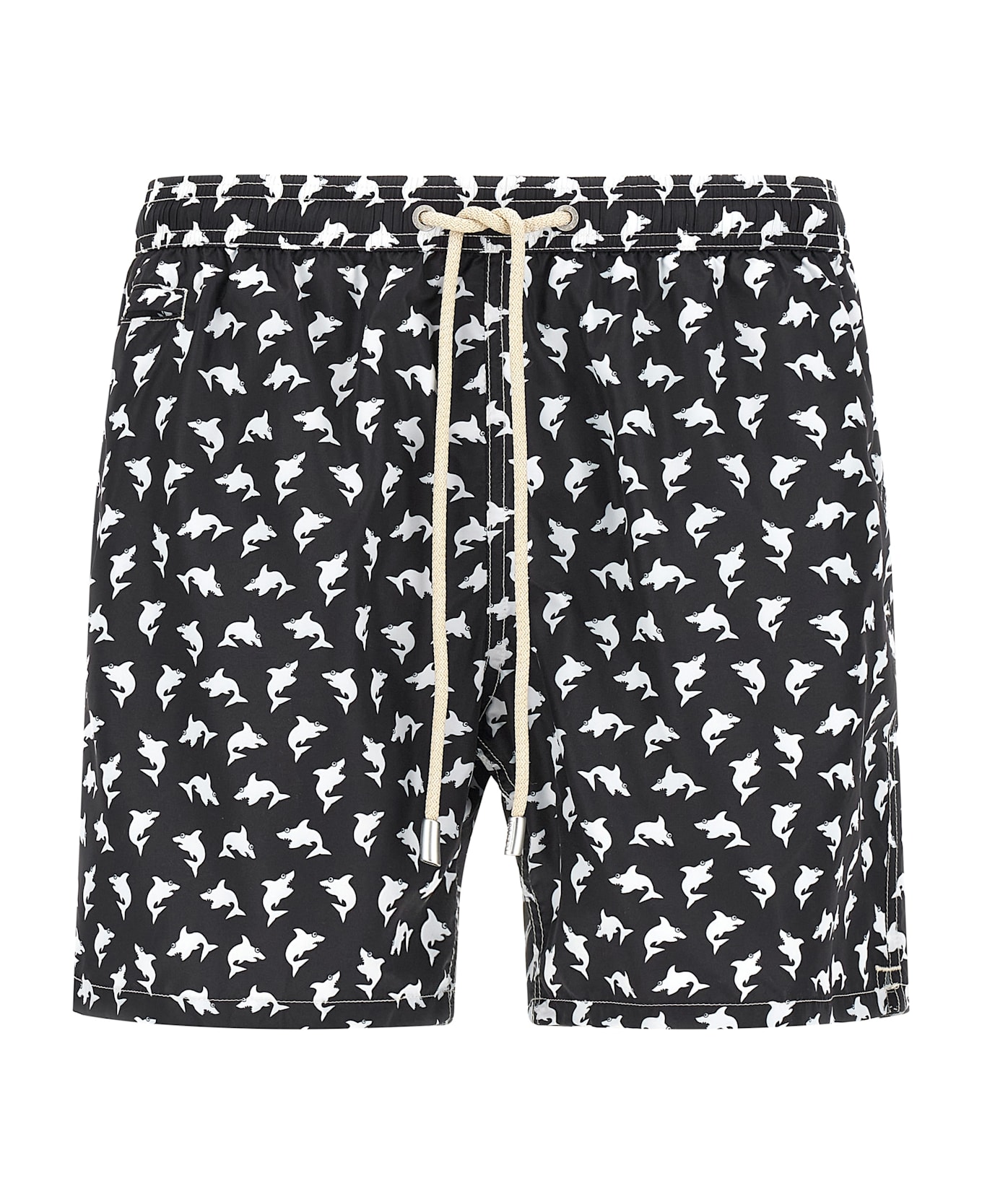 'Lighting' swimsuit in quick-drying 'Bad Shark' print light technical fabric with medium length, back logo patch, drawstring elastic waistband, pockets, side slits at the hem, inner mesh briefs. SUSTAINABLE: Product made from recycled polyester.