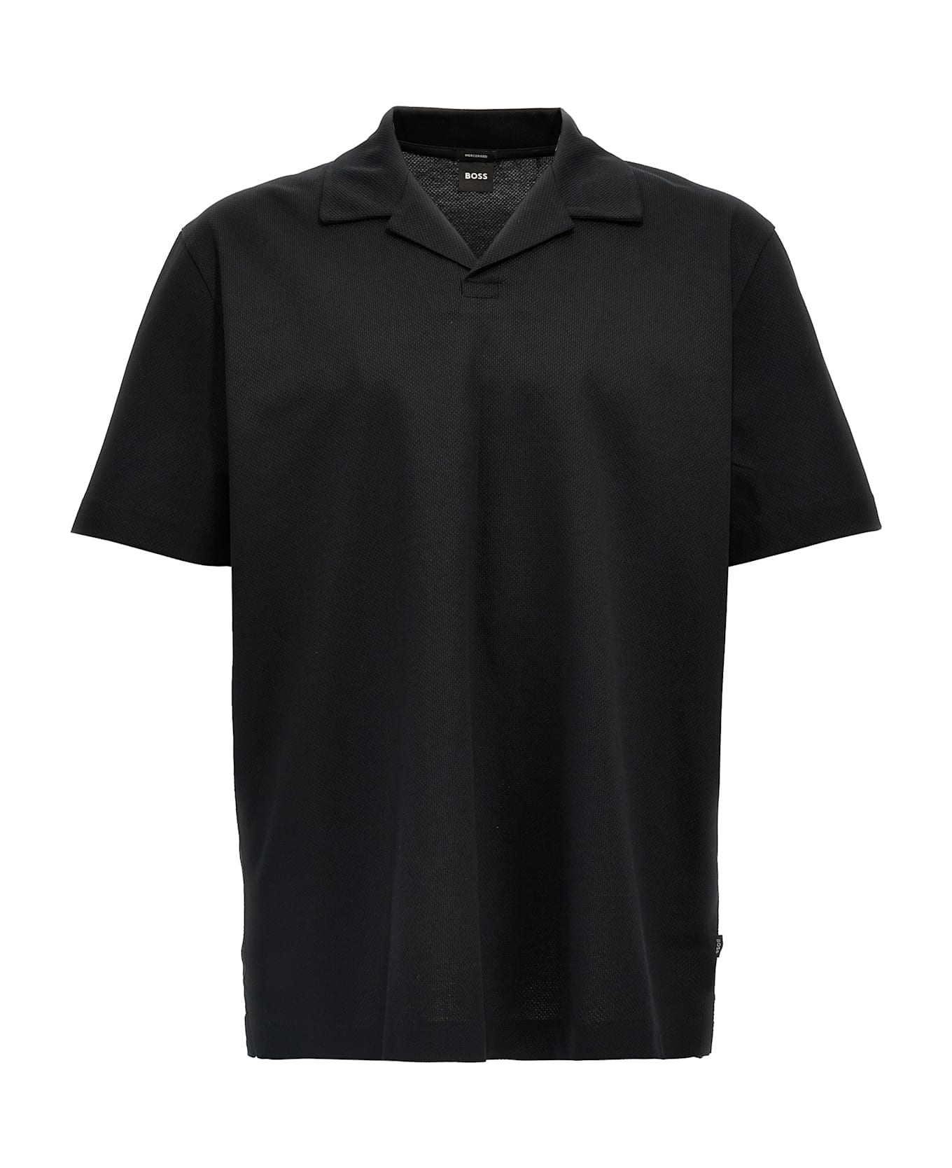 'Pye 18' honeycomb cotton polo shirt with collar, V-neck, short sleeves, side splits. SUSTAINABLE: This product is made from organic cotton.