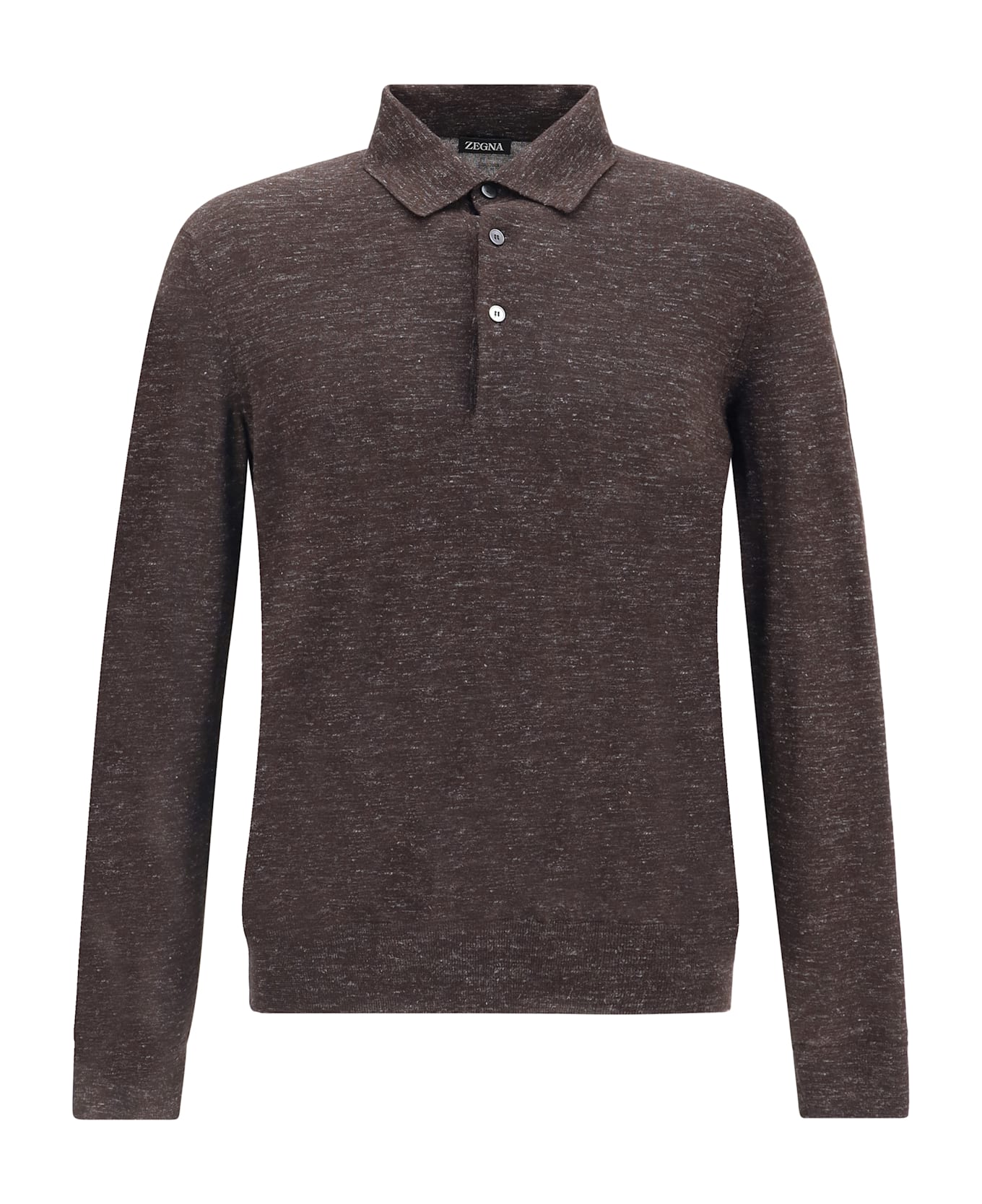 Zegna's long-sleeved silk mélange top is an elegant and refined garment ideal for completing sophisticated looks with a contemporary twist. made of pure silk with a fluid and light texture, it features a classic collar, a front closure with discreet buttons, and ribbed detailing on the cuffs and hem for a snug yet comfortable fit. the mélange pattern gives color depth and character to the garment, perfect for formal or smart casual settings.