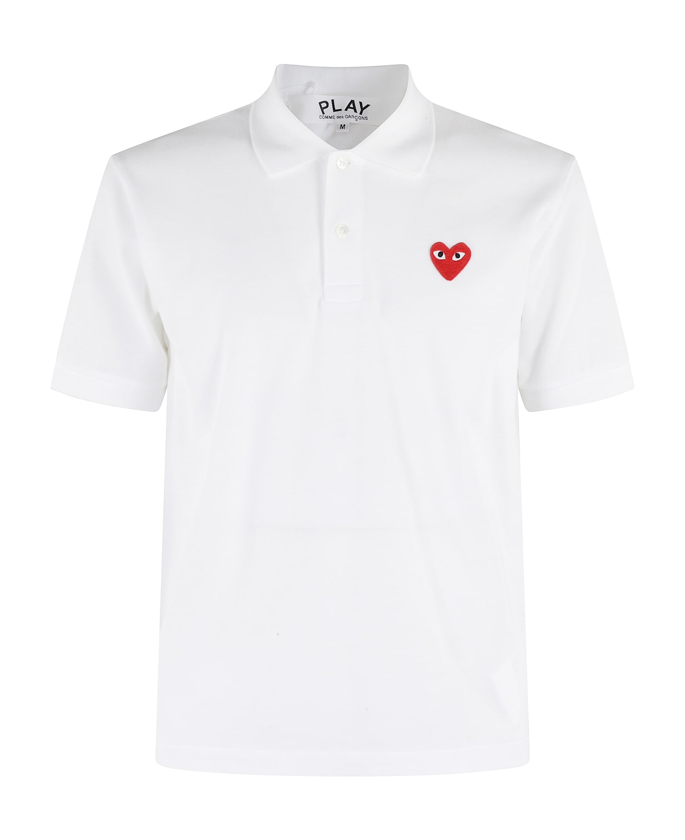 Polo shirt - Comme des Garcons Play - Red emblem pattern - White color - Polo collar - Short sleeves - Top logo patch - Front button closure