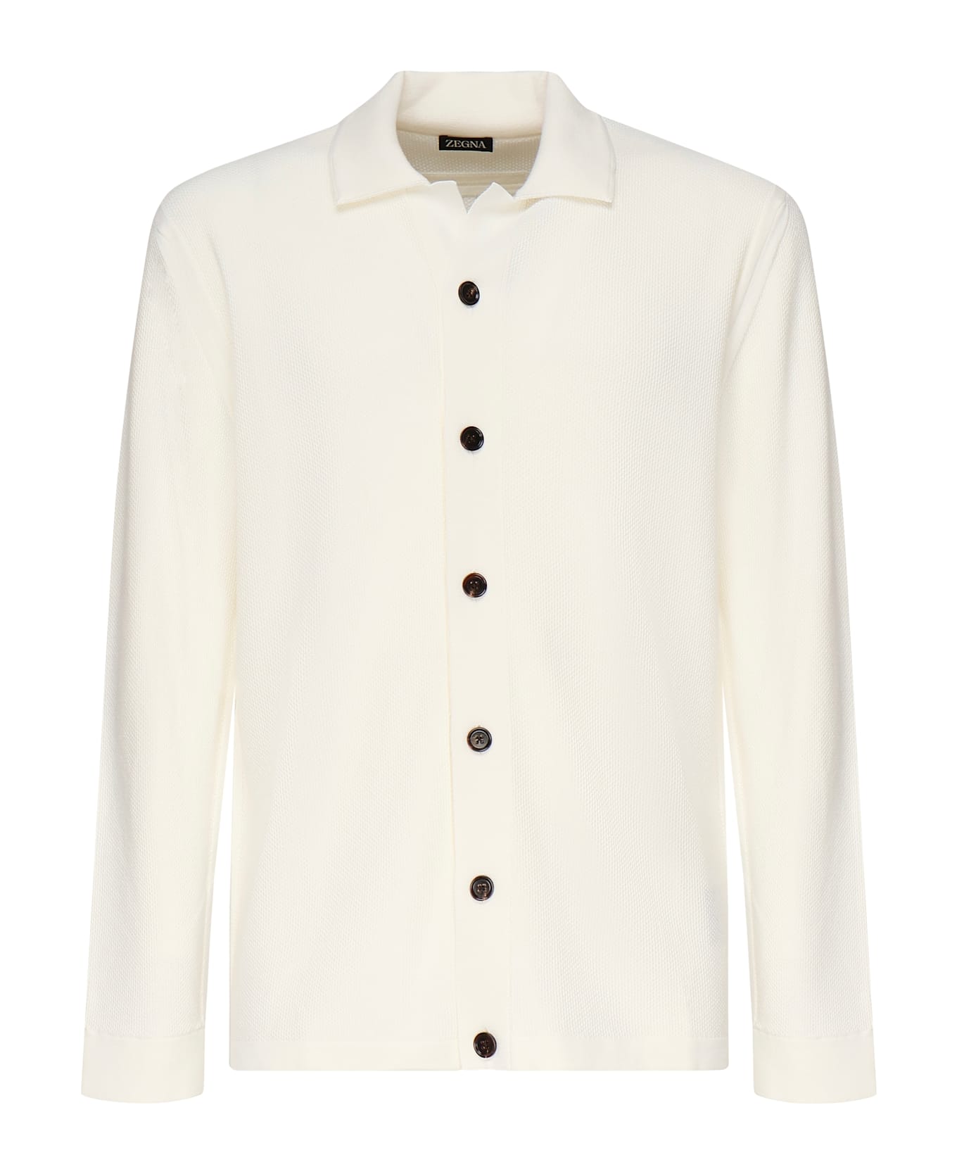 -Shirt collar -Tubular bottom -Shirt cuffs -Button closure -Made in Italy -Size shown in photo is 50 IT -Color: Ivory