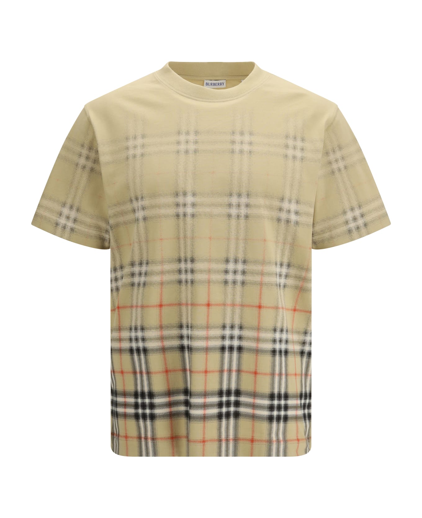 The check cotton t-shirt by burberry is an iconic and versatile piece. decorated with the classic burberry check, which gradually fades into a solid color, this shirt adds a touch of understated elegance to your wardrobe. the crew neck style offers a comfortable and relaxed fit, making it perfect for a casual yet refined look. a must-have for those seeking timeless style, enriched by burberry tradition.