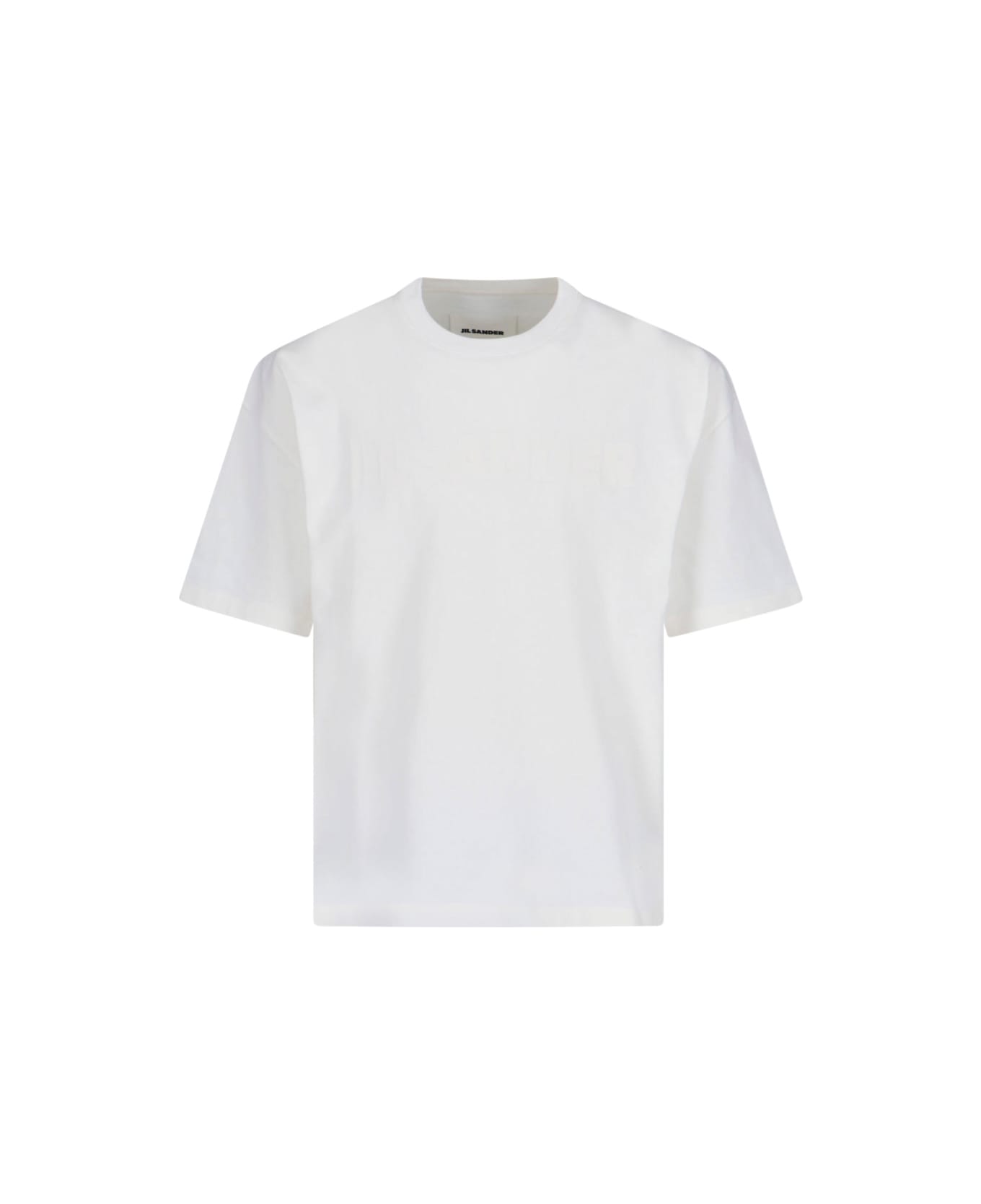 Jil Sander logo oversized T-shirt in white cotton with crewneck, short sleeves, tone-on-tone logo print on the front, straight hem. Composition: 100% Cotton
