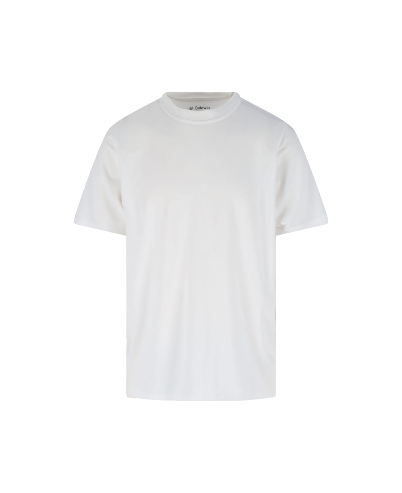 Goldwin 'Polartec Delta'" white fabric t-shirt with crew neck, short sleeves, straight hem.