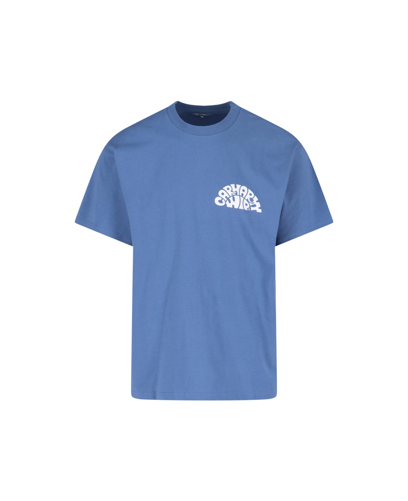 Carhartt WIP "S/S Jazzy" navy organic cotton T-shirt with crew neck, short sleeves, white logo print on the chest, maxi white logo print on the back, straight hem. Composition: 100% Cotton