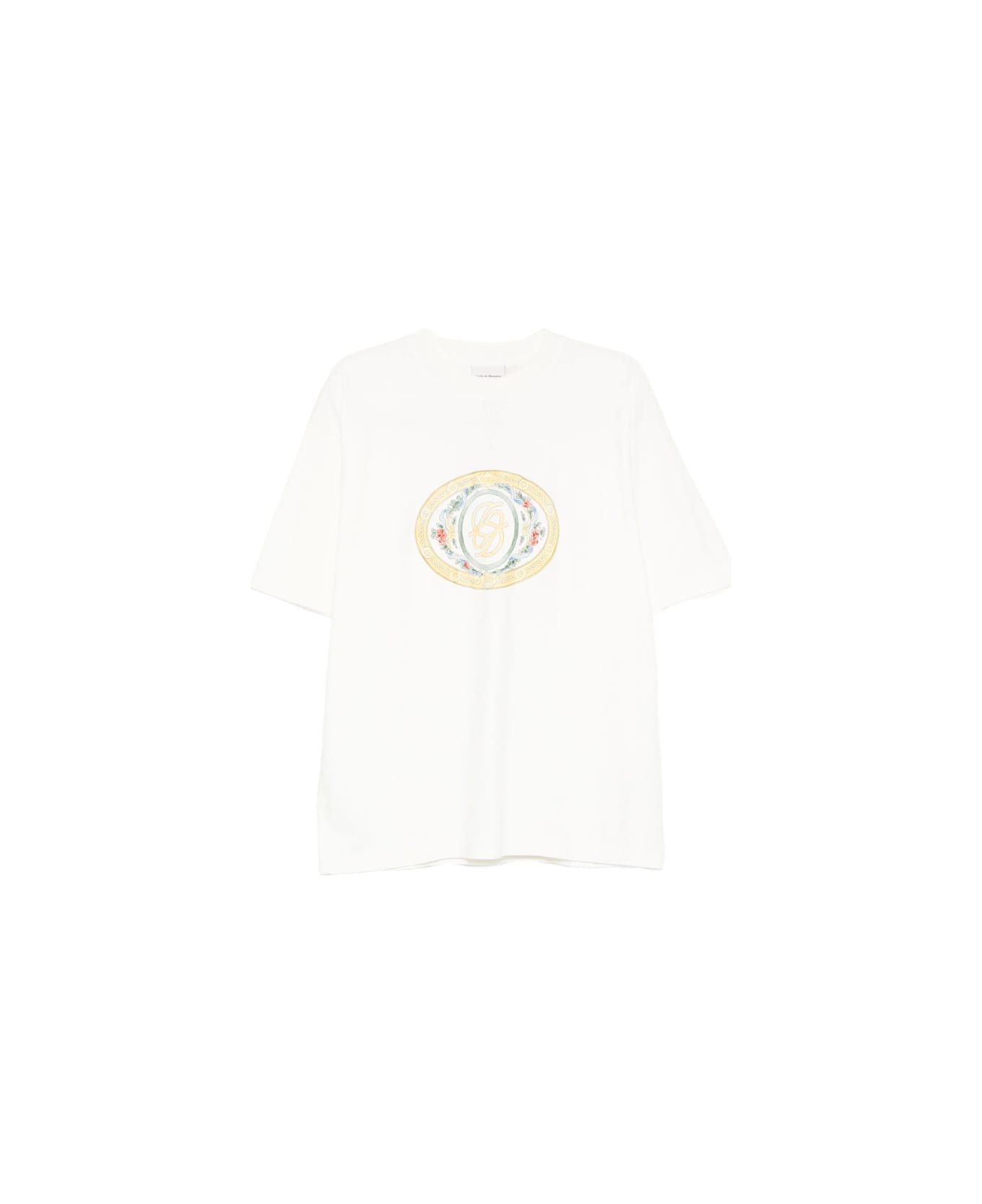 off-white oval frame floral detail logo emblem gold-tone detailing cotton