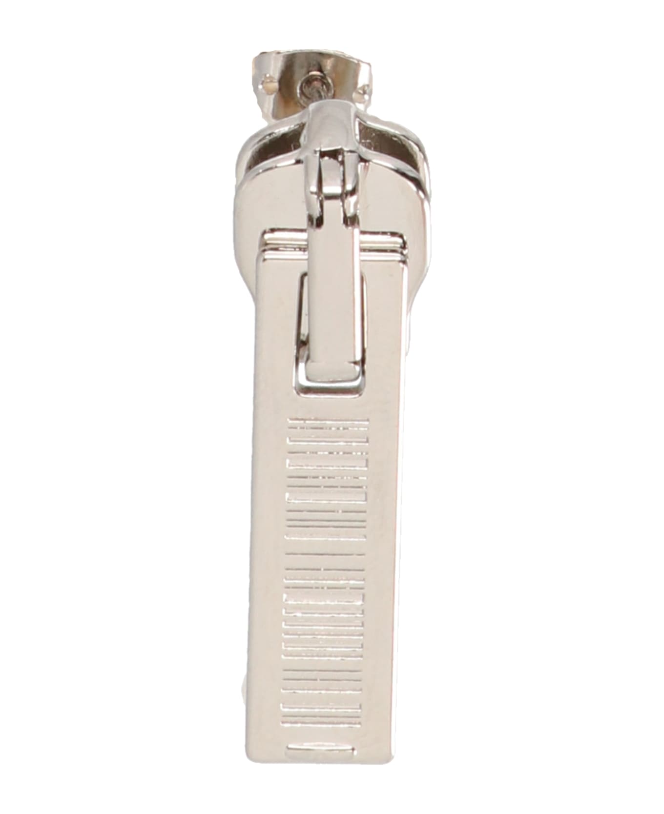'Cashmere Zipper' single earrings in silver metal featuring engraved plaque. ITEM CANNOT BE RETURNED