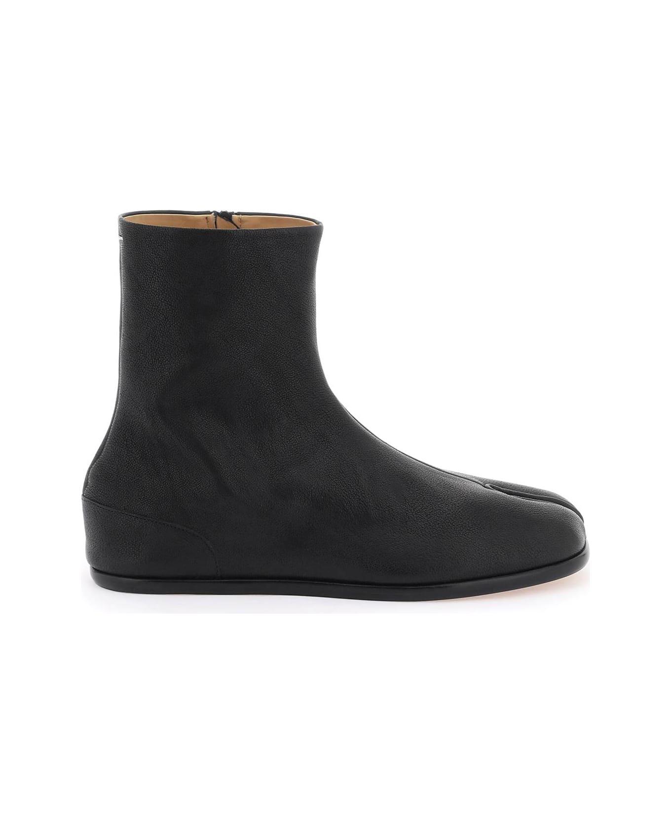 Maison Margiela ankle boots in grained leather, characterized by the iconic Tabi toe. Signature white stitch on the back. Side zip closure, leather lining, leather sole. Composition: 100% camel leather