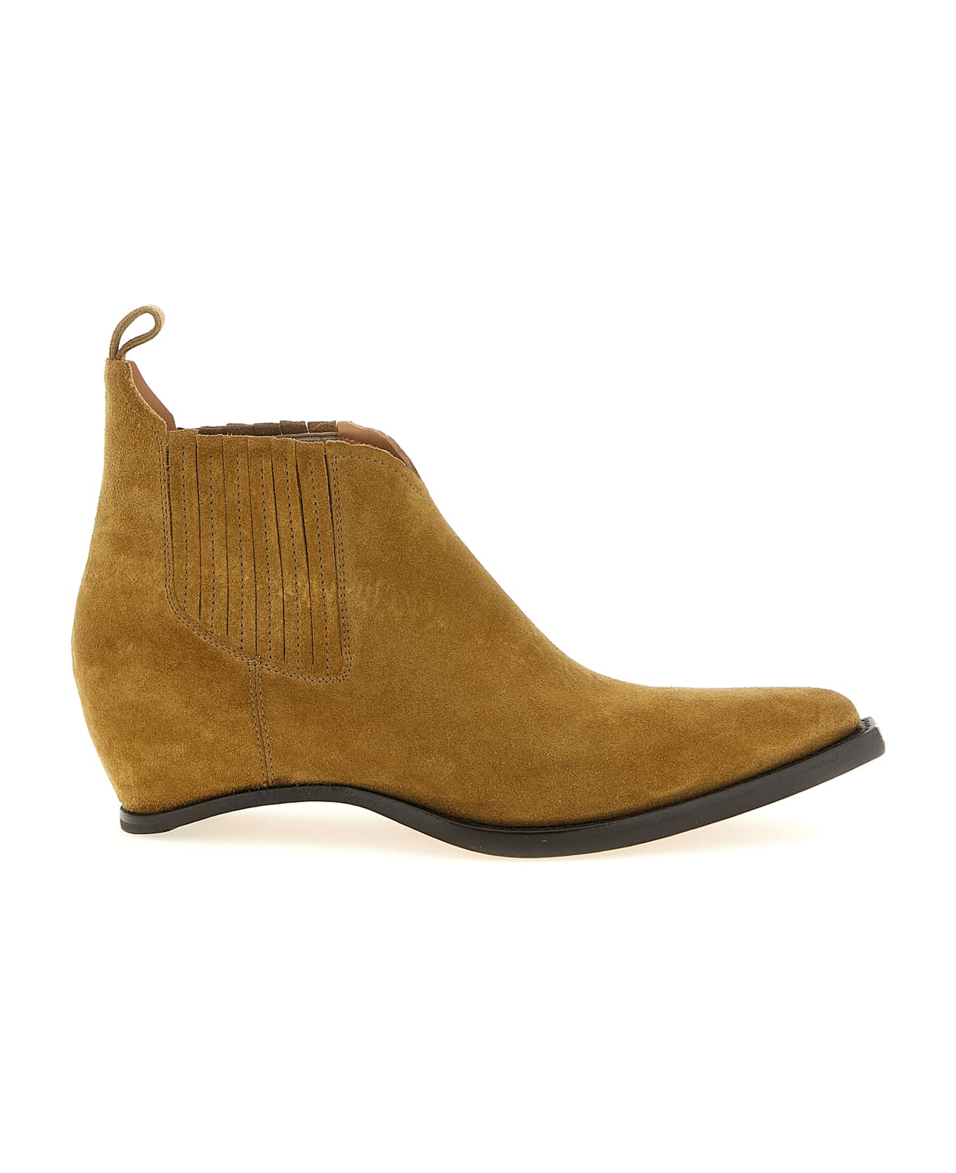 'Western Chelsea Heel-Less' vintage effect suede ankle boots with tapered toe, side elastic inserts, back 'Signature' stitching, inner wedge, curved heel, leather sole. Composition: 100% bovine leather (Bos Taurus)