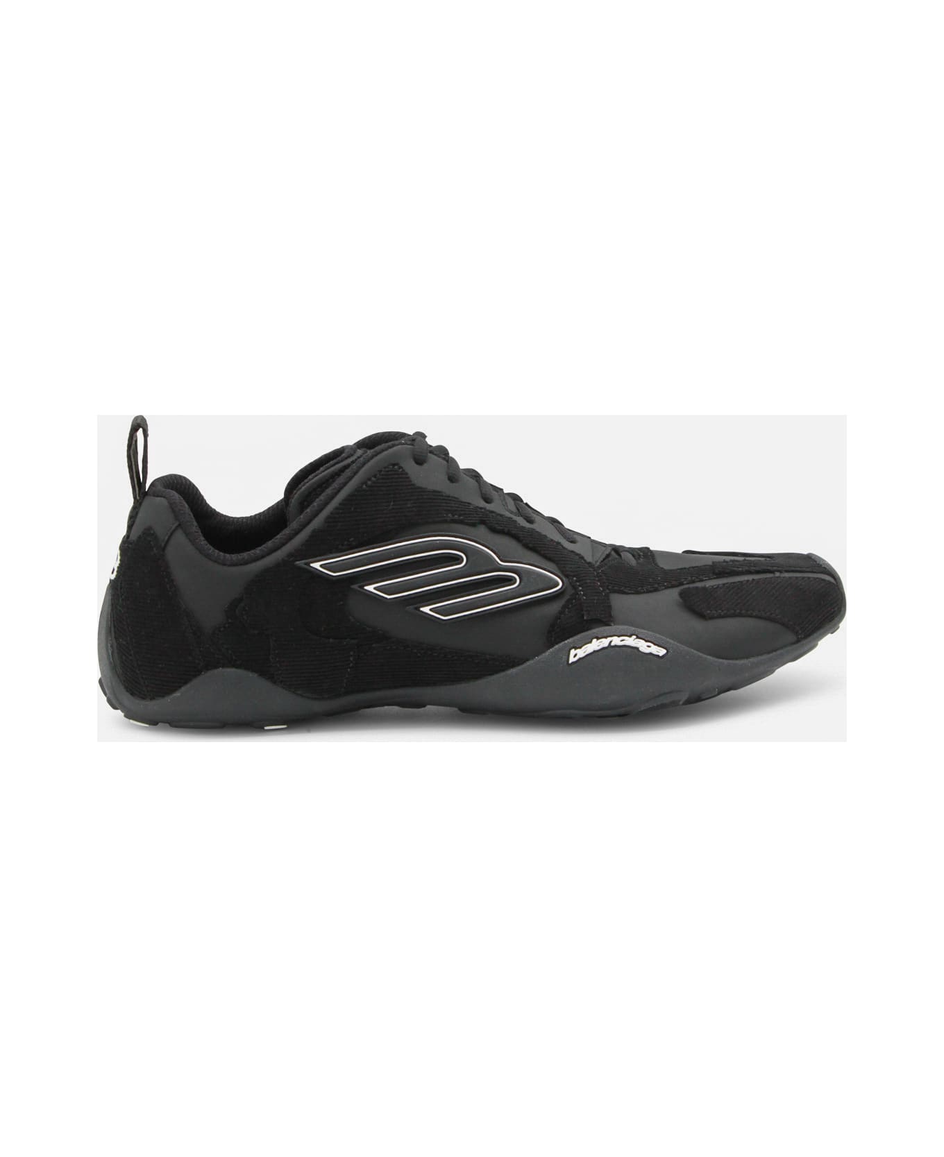 Black Monday sneakers from Balenciaga featuring round toe, laces fastening, leather sole and lateral logo patch. Composition: 48% Polyester, 31% Recycled Co, 21% Cotton