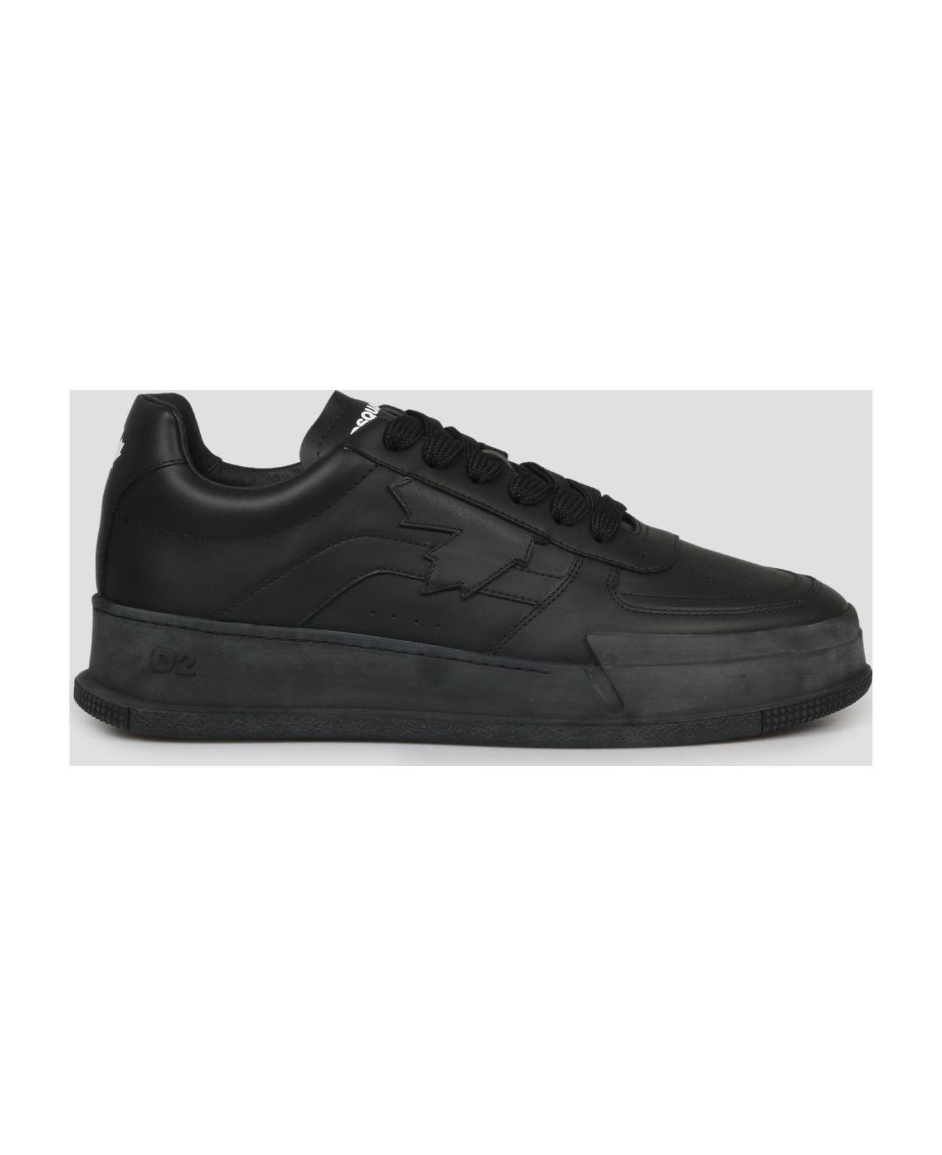 Dsquared Canadian sneakers, in matte leather. - SS23 - Perforated round toe - Lace up - Lettering logo print on the front tongue - Maple leaf patch on the outside - Maple leaf print on the back - Rubber sole - Made in Italy - Calf leather