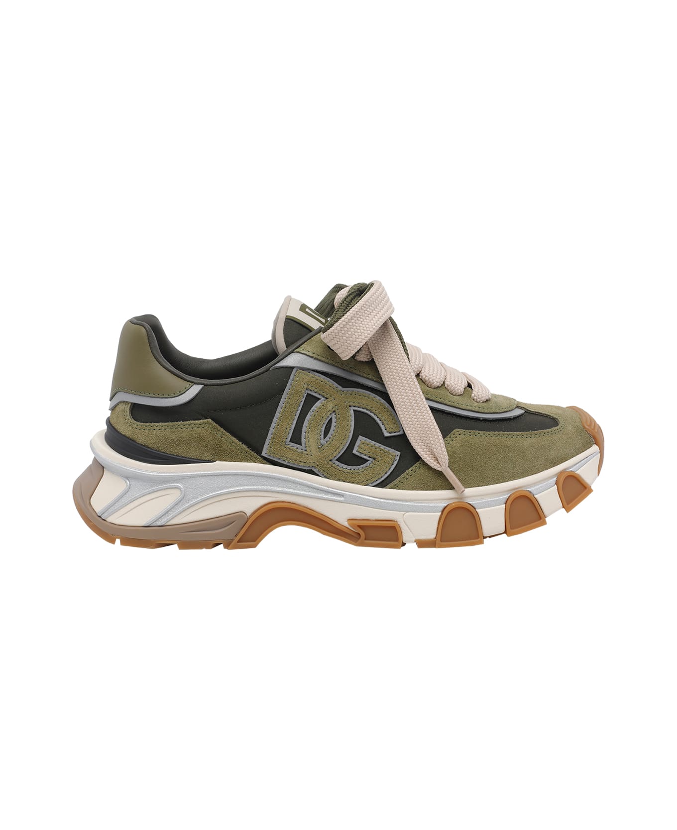 Dolce&Gabbana green DG Country Road sneakers, laces closure, lateral fabric and suede upper, round toe Composition: 100% Suede Leather, 100% Fabric/rubber Sole