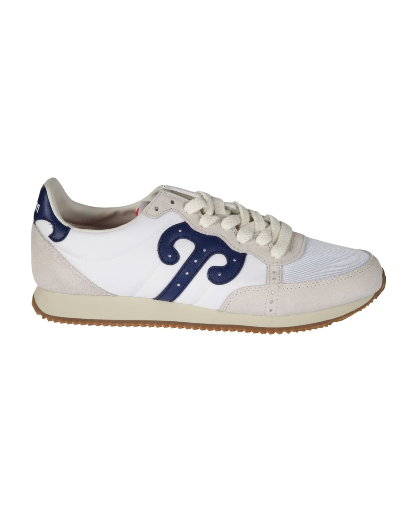 Logo Sneakers from Wushu Ruyi: White/Blue Logo Sneakers with round toe, lace-up front fastening, logo patch to the side and ridge rubber sole. <