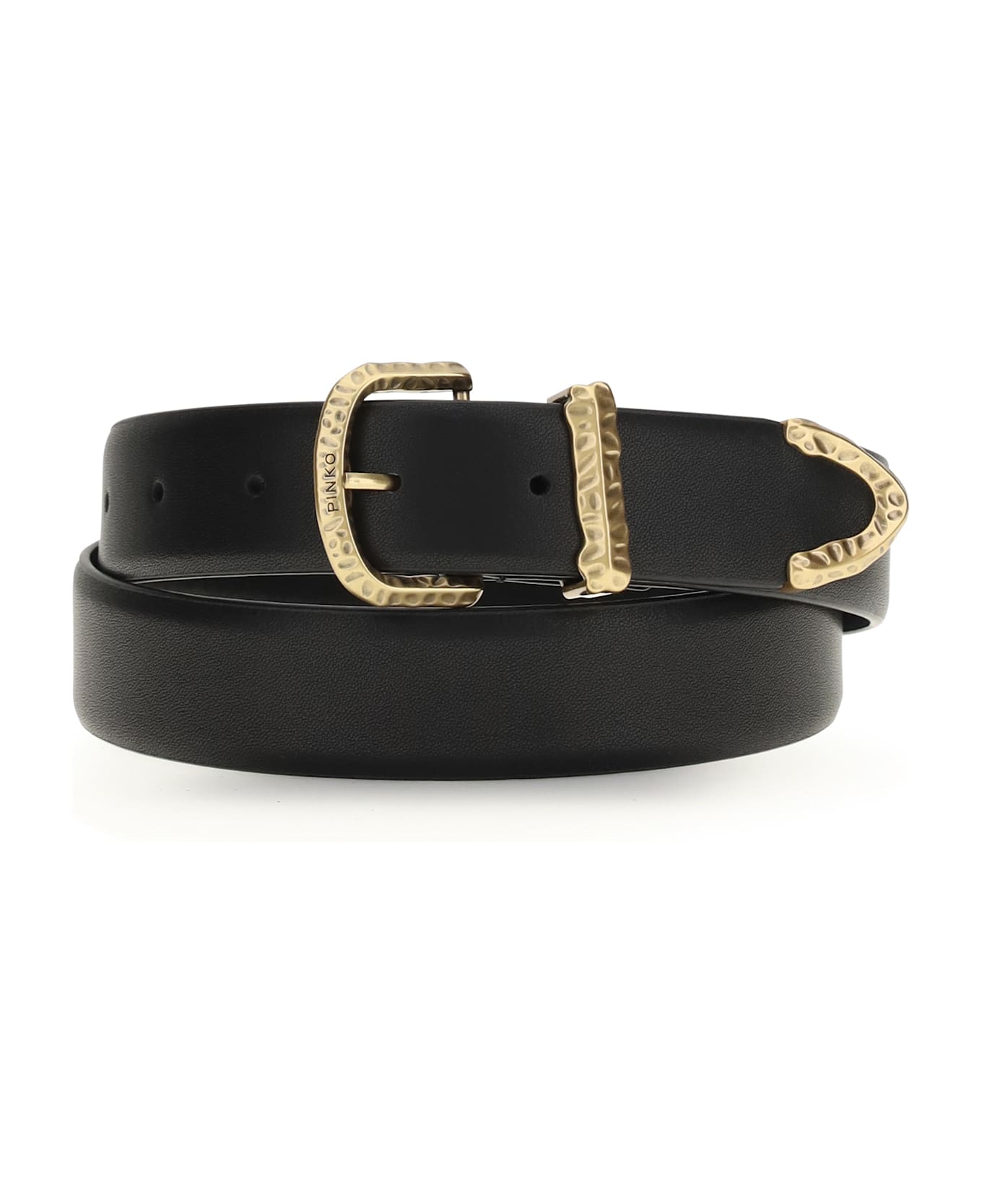 The leather belt by pinko features a decorated buckle closure, adding a touch of elegance to the minimalist design. the slightly pointed metal tip adds a refined detail, making this accessory perfect for completing any look with style.