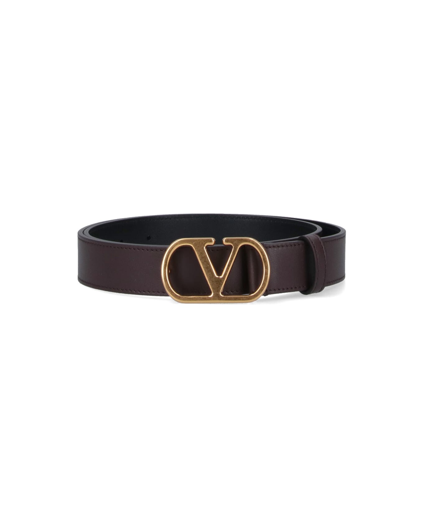 Valentino Garavani Vlogo Signature belt in brown leather with gold metal logo buckle on the front, adjustable. Composition: 100% Calf Leather