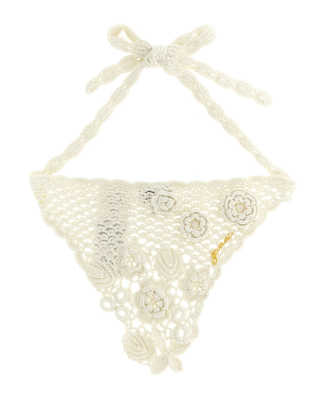 'Cotton Crochet' crocheted cotton head scarf with floral decorations, metal logo applied on the front, tie closure. SUSTAINABLE: This product is made of organic cotton.