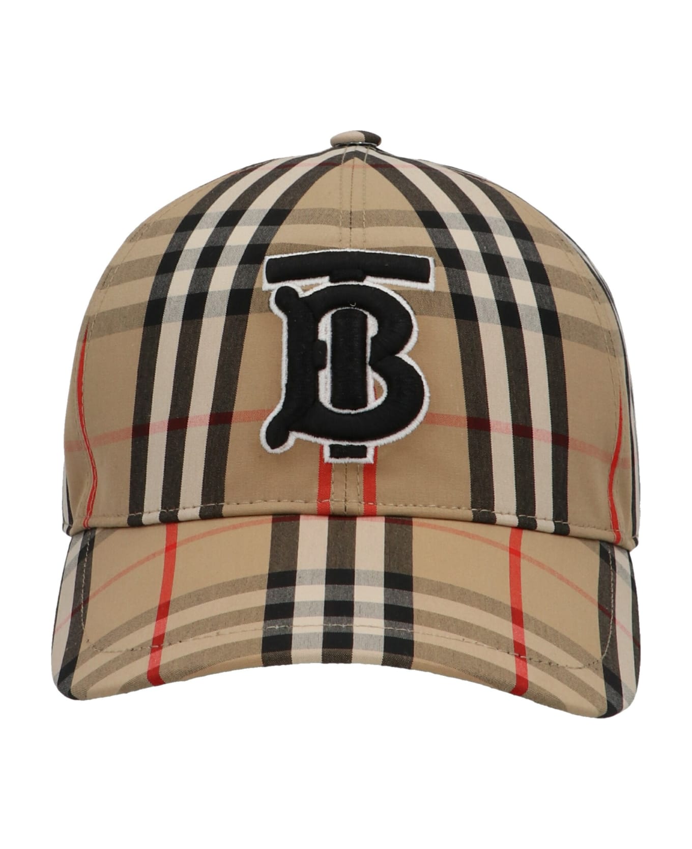Burberry check logo baseball cap featuring an iconic TB logo embroidery on the front and adjustable closure with snap buttons on the back. Composition: 100% cotton