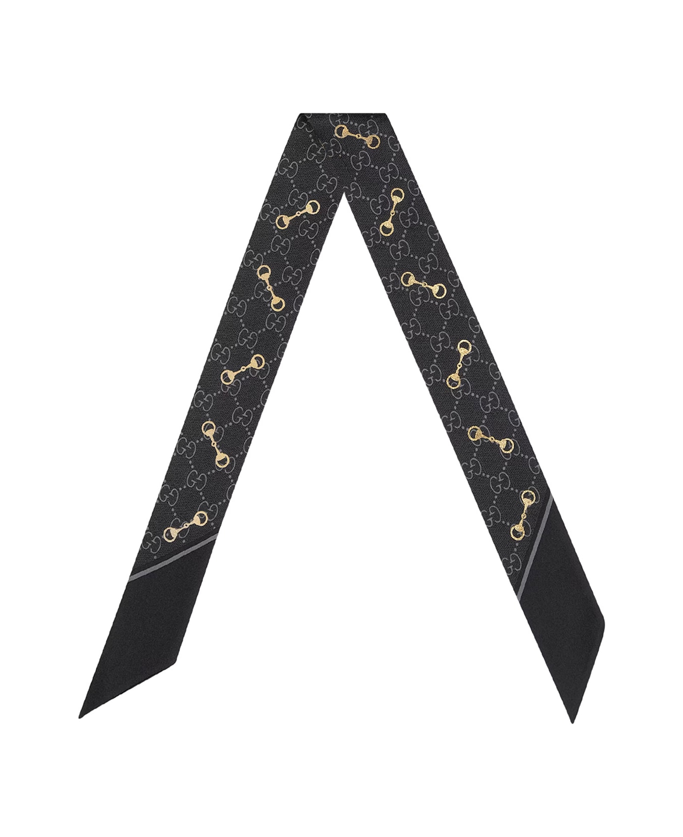 - Print With Iconic Horsebit - Contrasting Detail - 86 X 5 - Made In Italy - 100% Silk