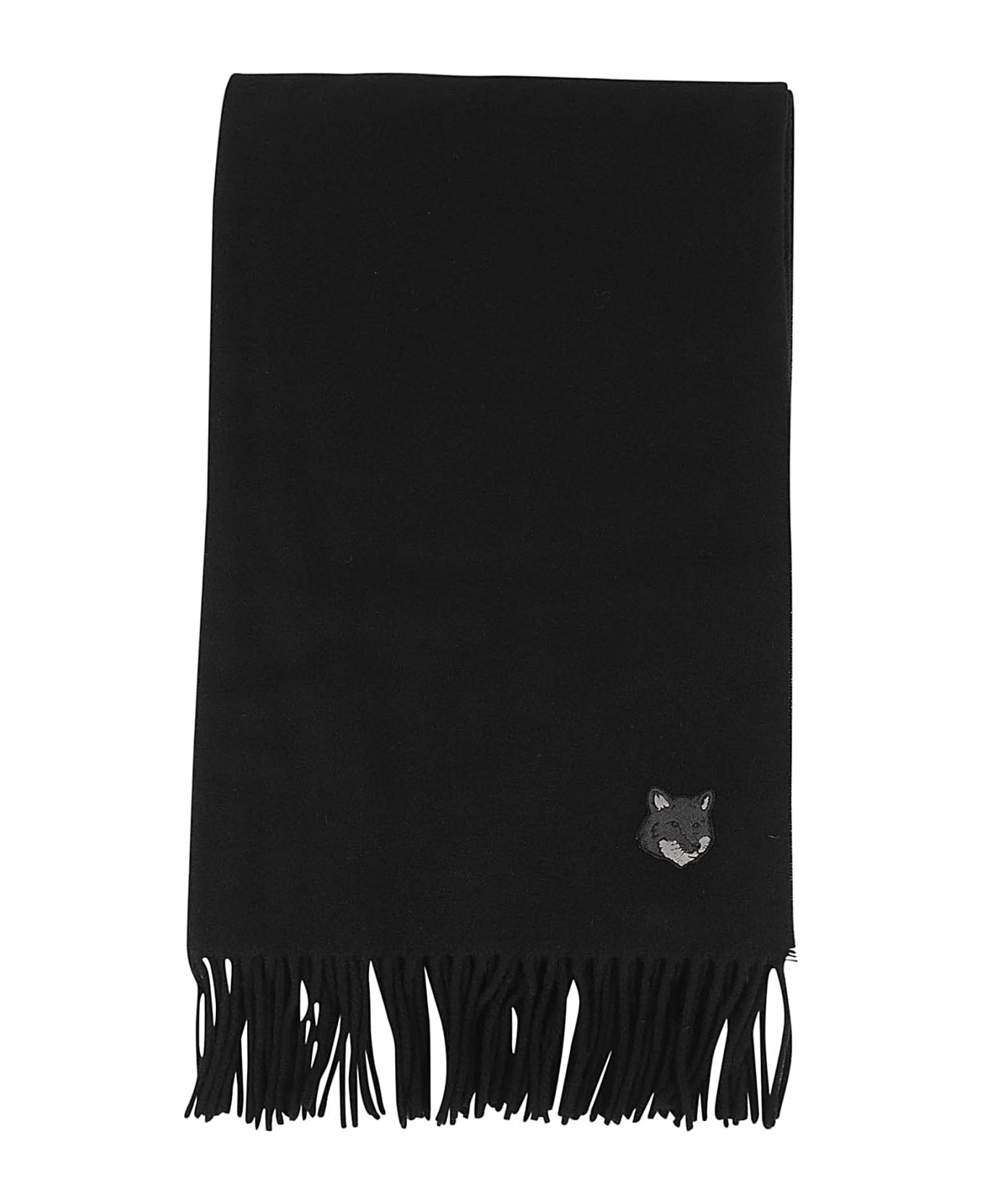 Bold Fox scarf - Maison Kitsuné - black color - front logo applique - fringed edge - 100% virgin wool