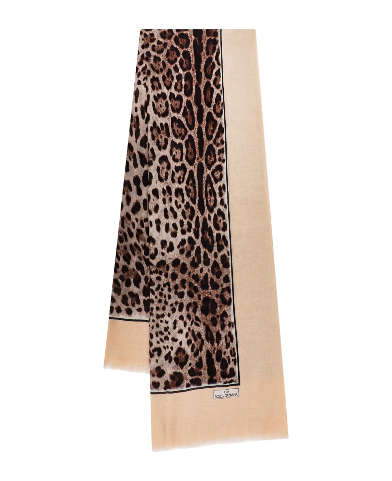 Kim DolceeGabbana scarf in modal and cashmere with animalier print - Printed Logo On The Front - Frayed - 135x200 - Made In Italy - 90% Modal 10% Cashmere