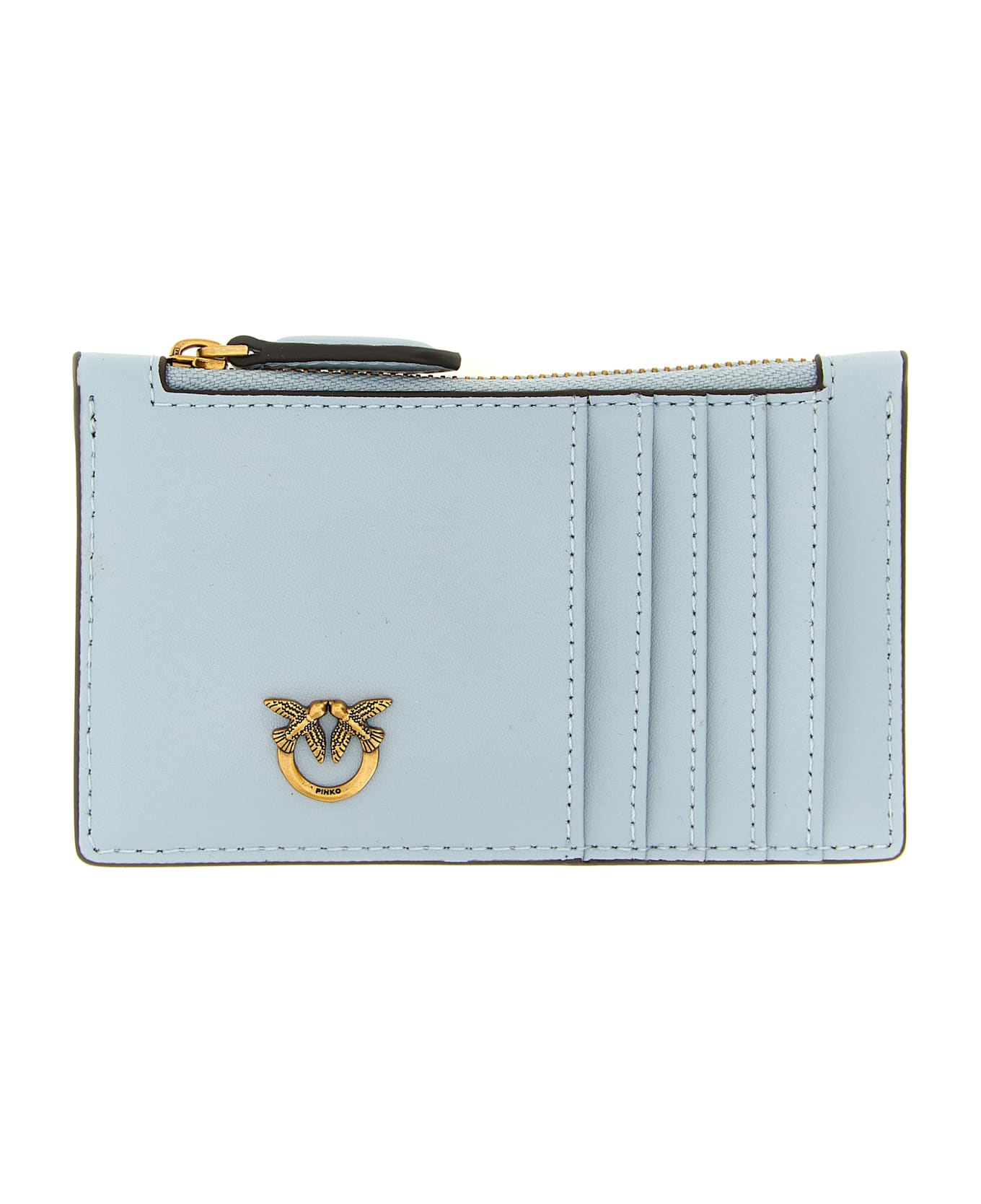 'Airone' silk leather card holder, metal 'Love Birds Diamond Cut' logo plaque on the front, top zip closure, polycotton lining.