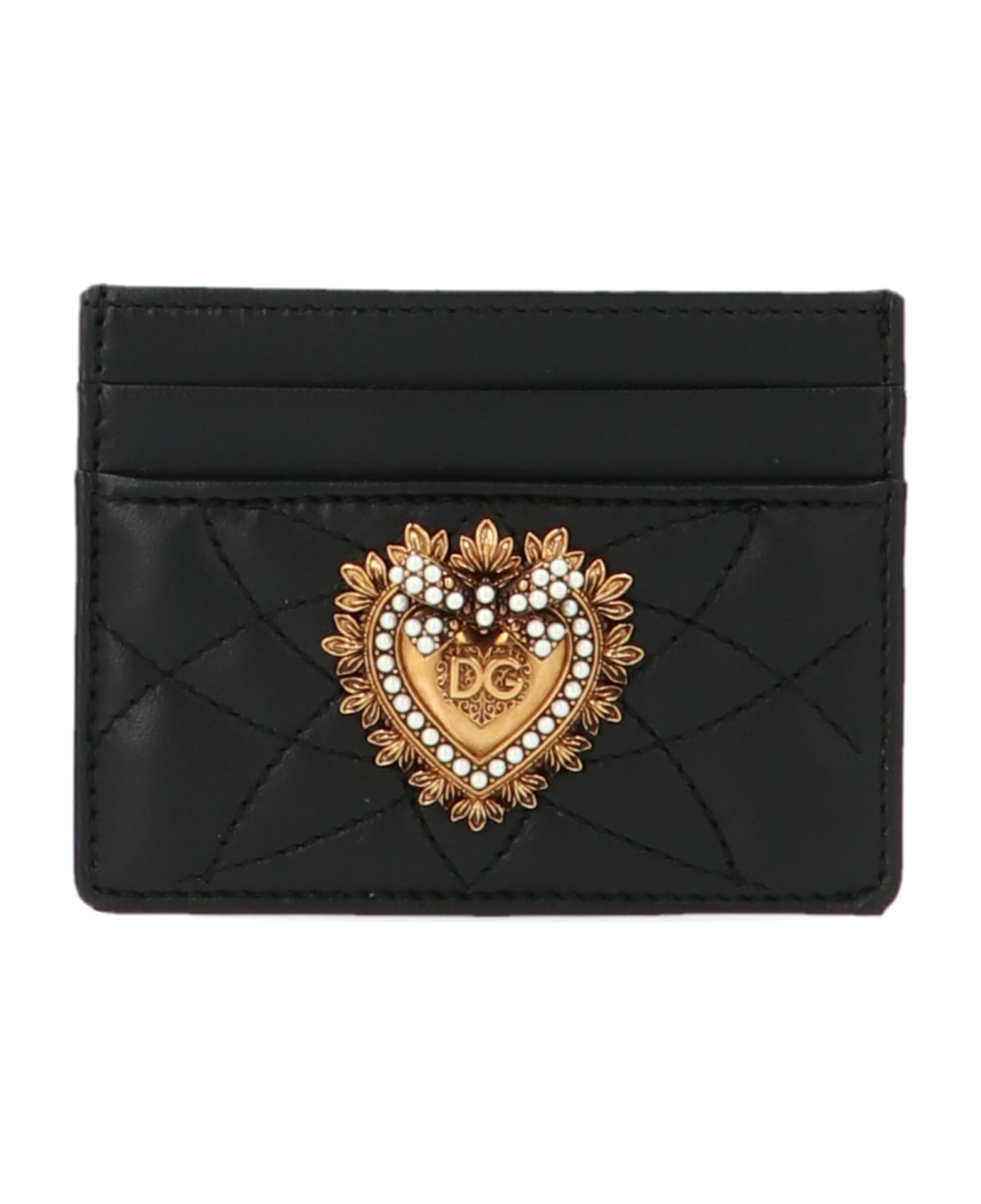 Dolce&Gabbana card holder in matelassé leather embellished with a sacred heart. Composition: 100% lamb leather