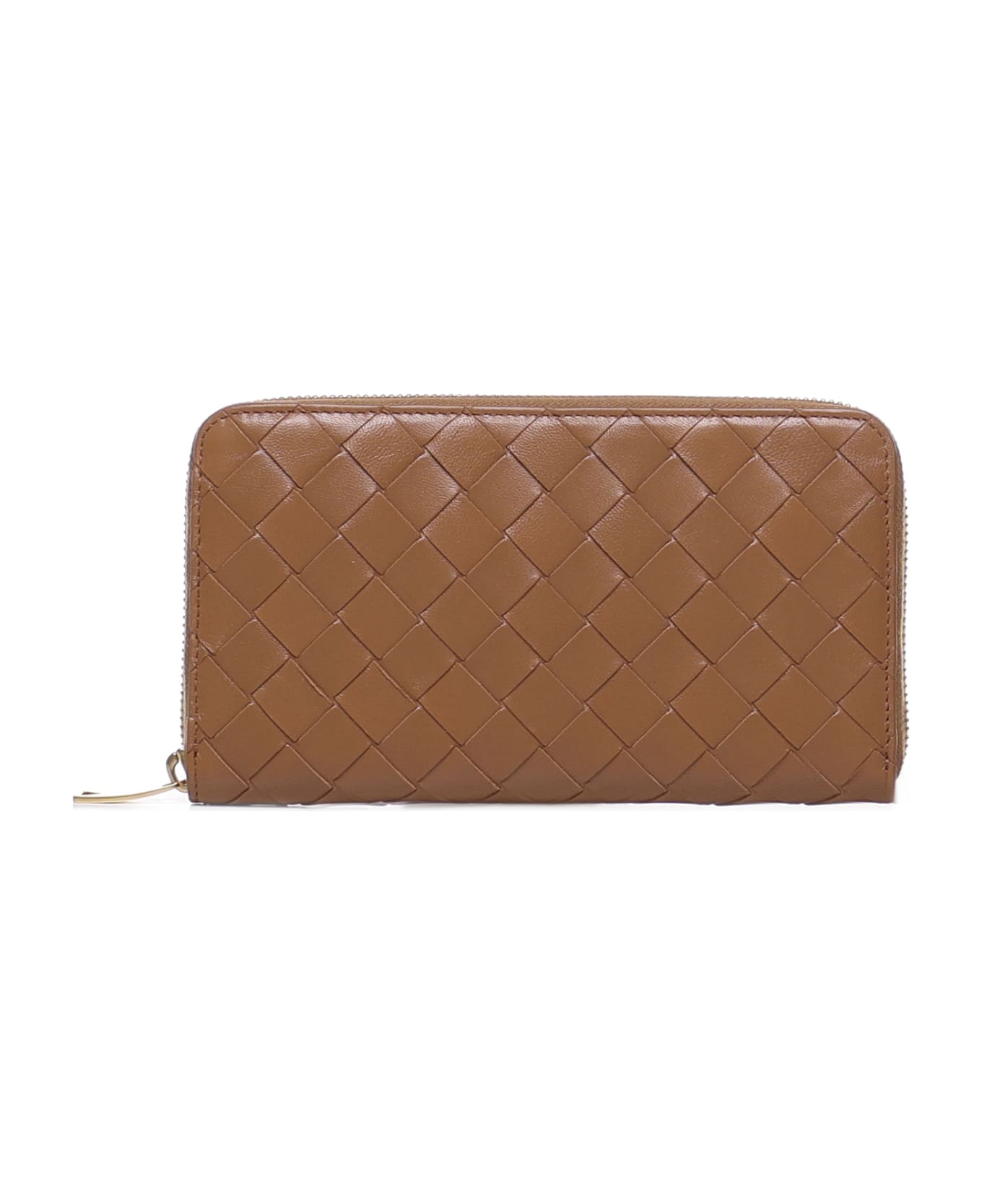 Wood-gold Interwoven Wallet With Zip from Bottega Veneta -Interwoven wallet with zip -Leather wallet with interweaving pattern -Eight card slots, two cash slots, two pockets, one coin pocket with zip -Zip closure -Gold hardware -Measurements: 11 x 19,5 x 2,5 cm -Made in Italy -Colour: Wood -100% calfskin