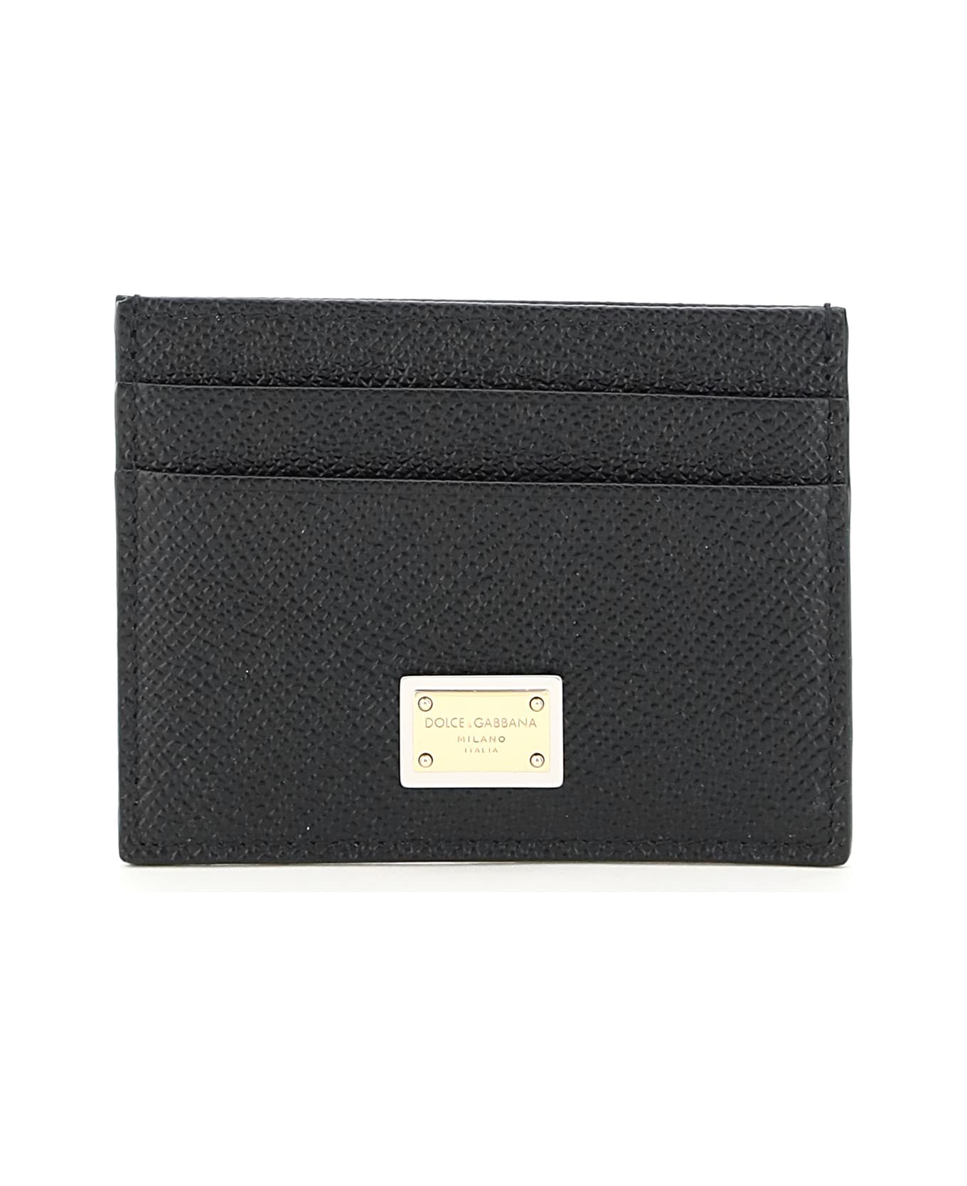 Dolce & Gabbana card holder in Dauphine-printed calfskin featuring four credit card slots, fabric-lined central slit compartment and the iconic metal logo plaque on the front. Composition: 100% vitello