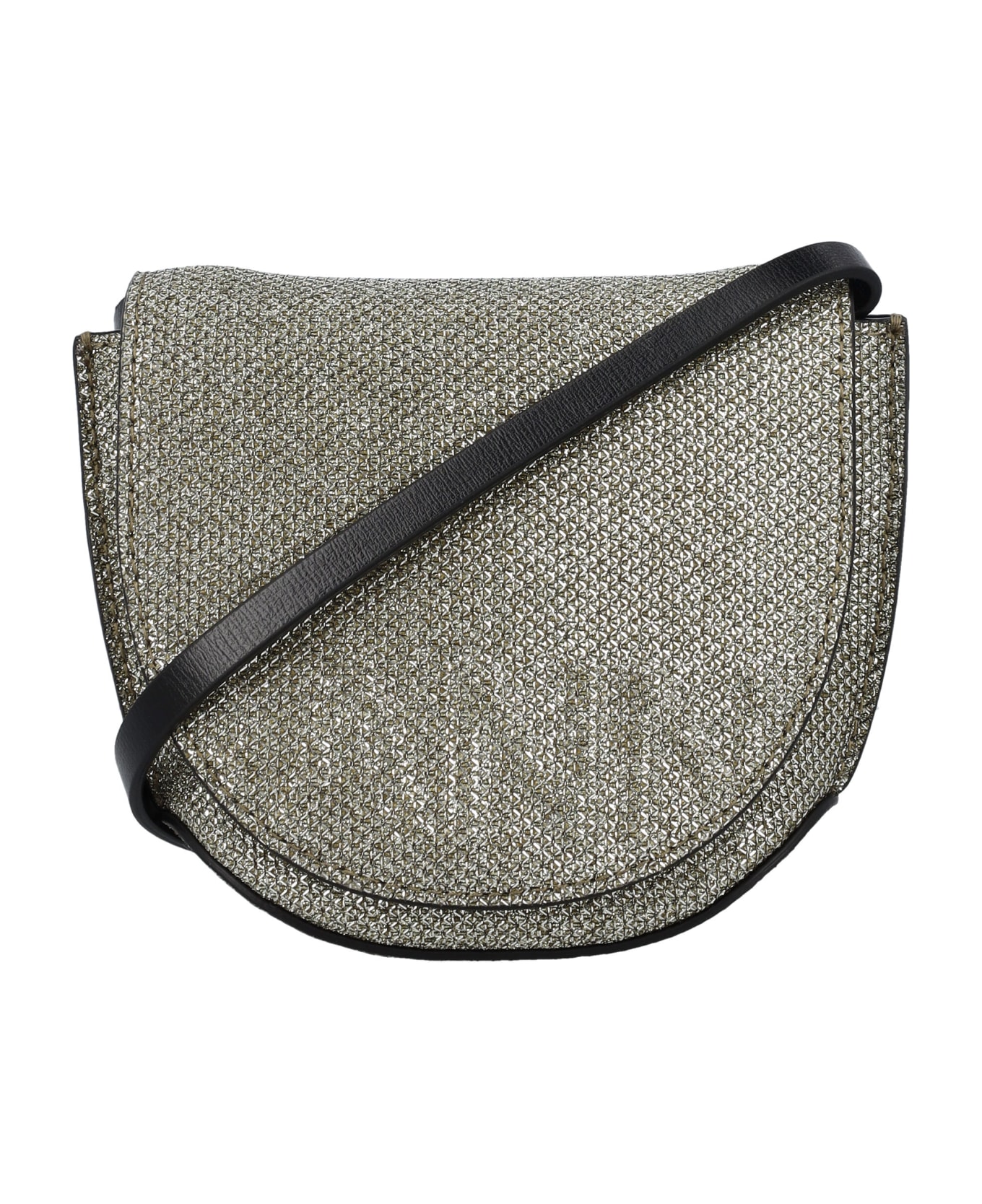 Banner Nano Saddle Bag By Ganni. Featuring: Flap With Subtle Embossed Ganni Logo And Magnet Closure Two Compartments Detachable And Adjustable Shoulder Strap Glitter Look Height: 11,5cm Width: 14cm Depth: 5cm