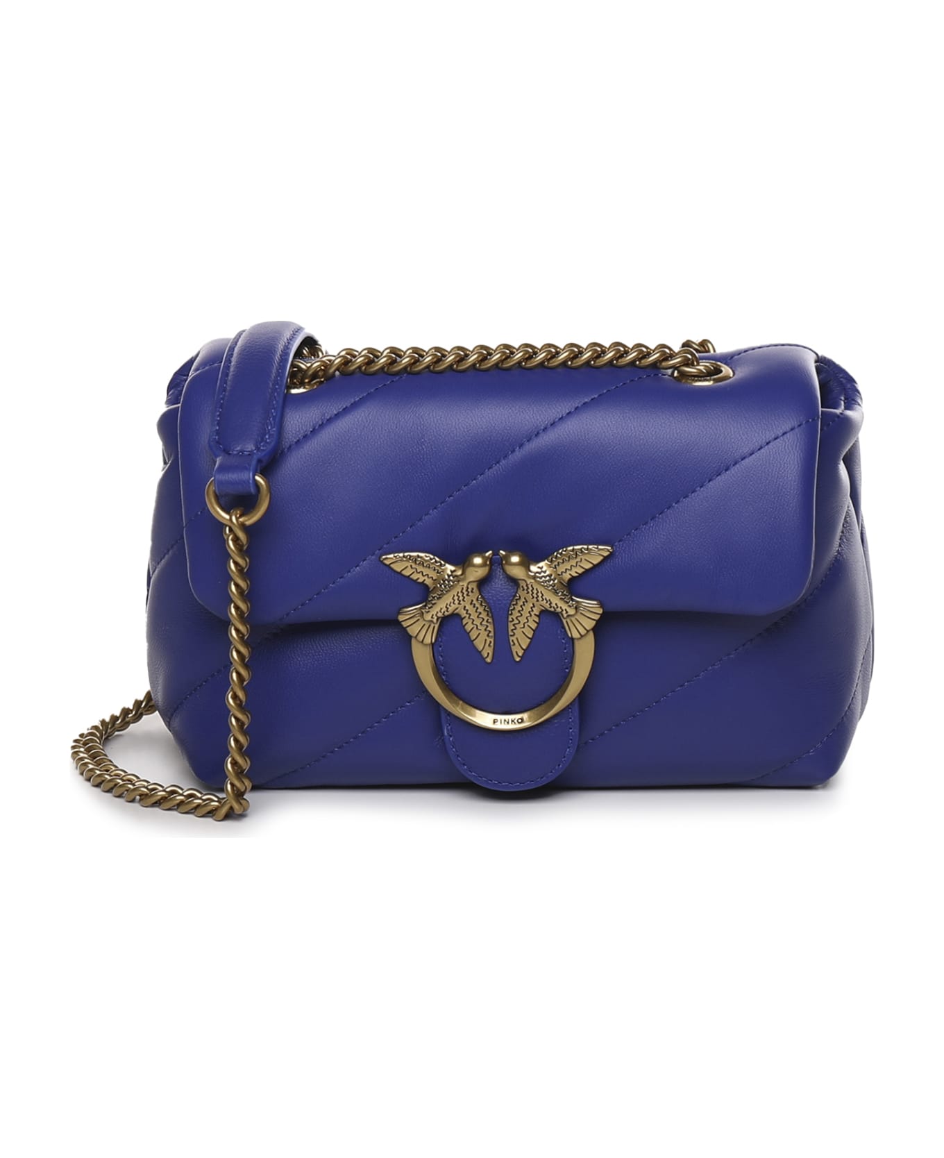 Blue royal Classic Love Mini Puff Bag from Pinko -Technical fabric -Quilting characterized by embroidery with rhombus -Iconic Love Birds Diamond Cut metal buckle -Recycled technical fabric -Classic round metal chain -Shoulder strap in recycled leather effect fabric -Measurements: 22x15x9 cm -Colour: Royal Blue -100% Polyester