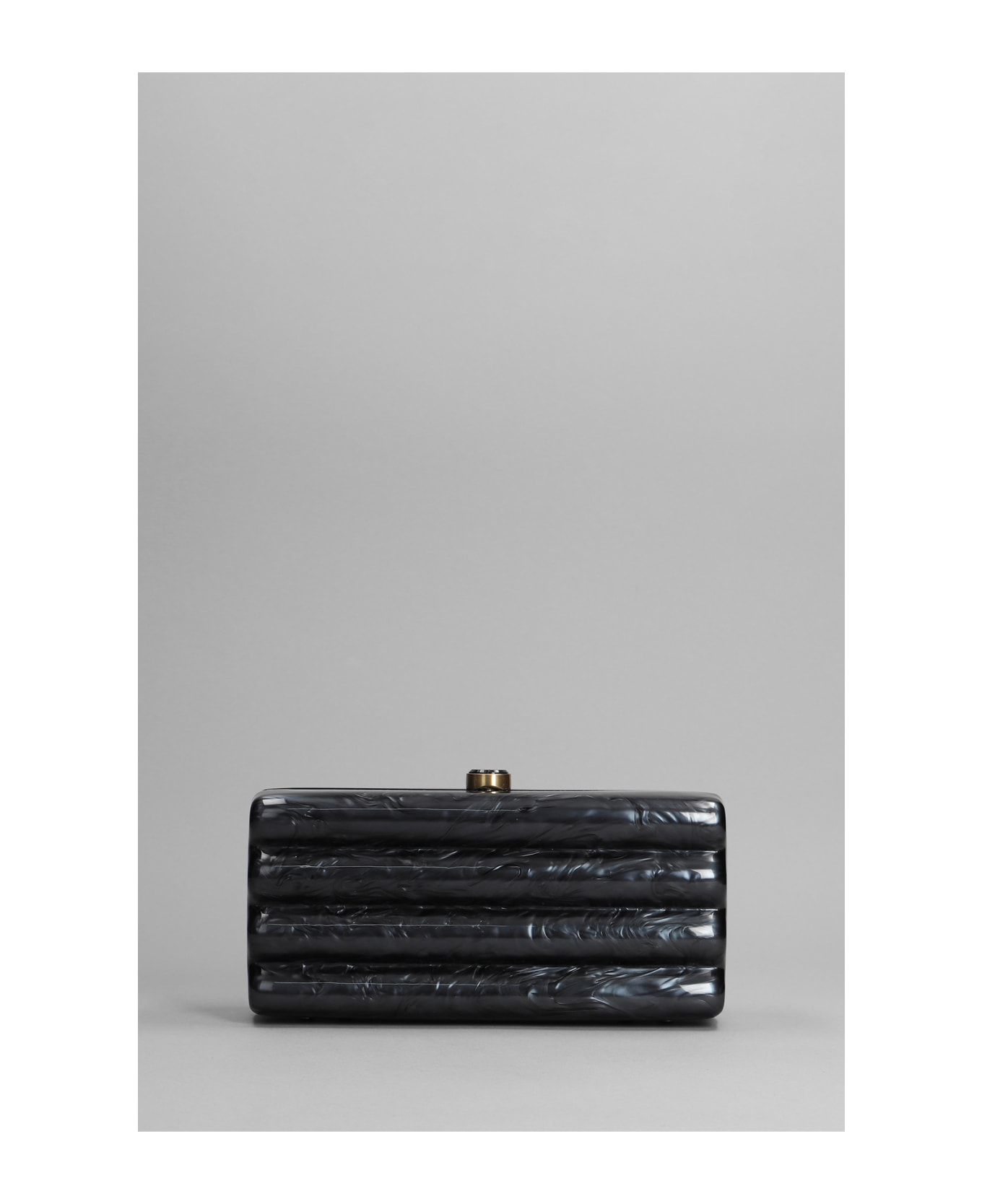 Enid Clutch in black acrylic, Height 100 mm, Width 200 mm, rectangular shaped, snap closure, marbled effect, 100% acrylic