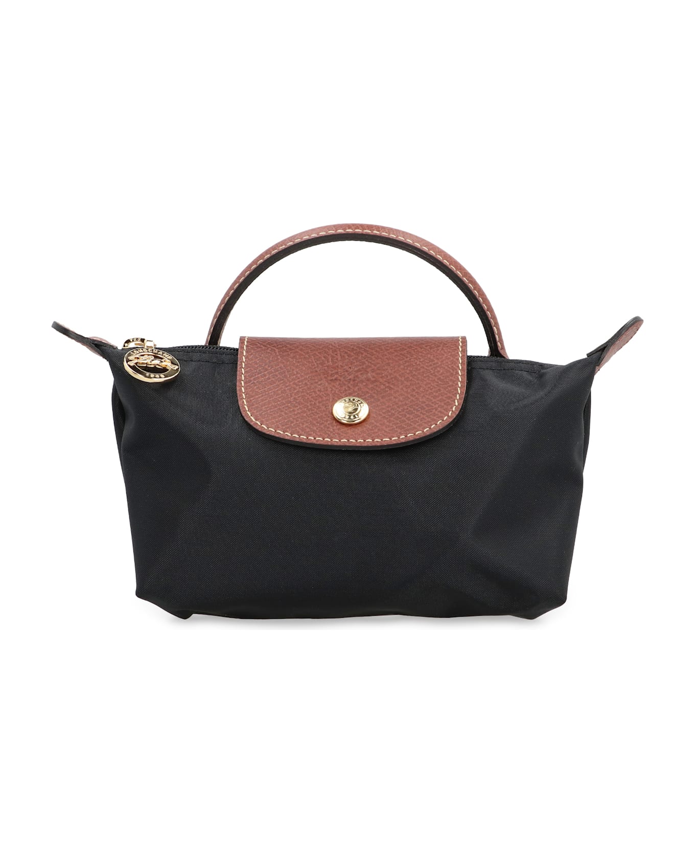 leather top handle zippered closure hidden by the flap