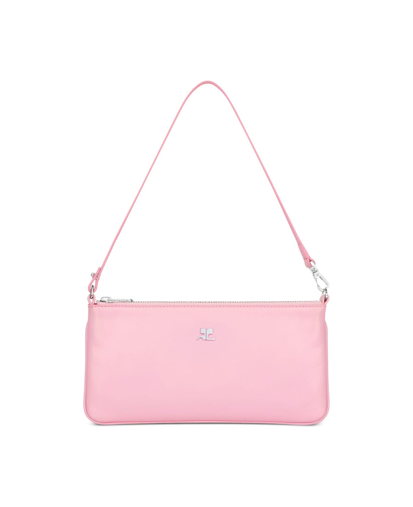 candy pink zip fastening logo plaque detachable strap silver-tone hardware