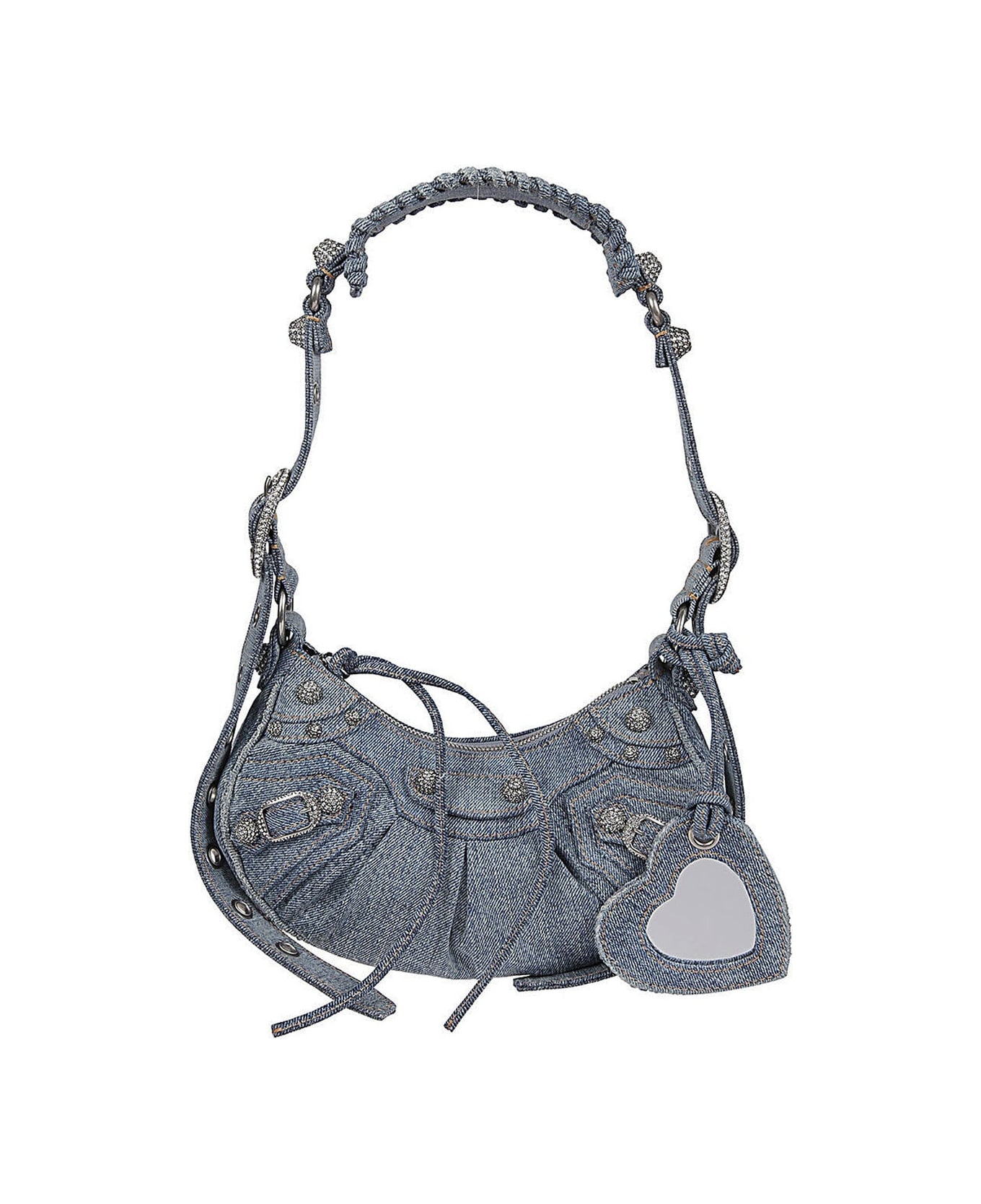 - Composition: 100% Cotton - Top zip closure - Height 12 cm - Width 6 cm - Removable heart mirror - Length 23 cm - Fixed and adjustable shoulder strap - Studs details with crystals