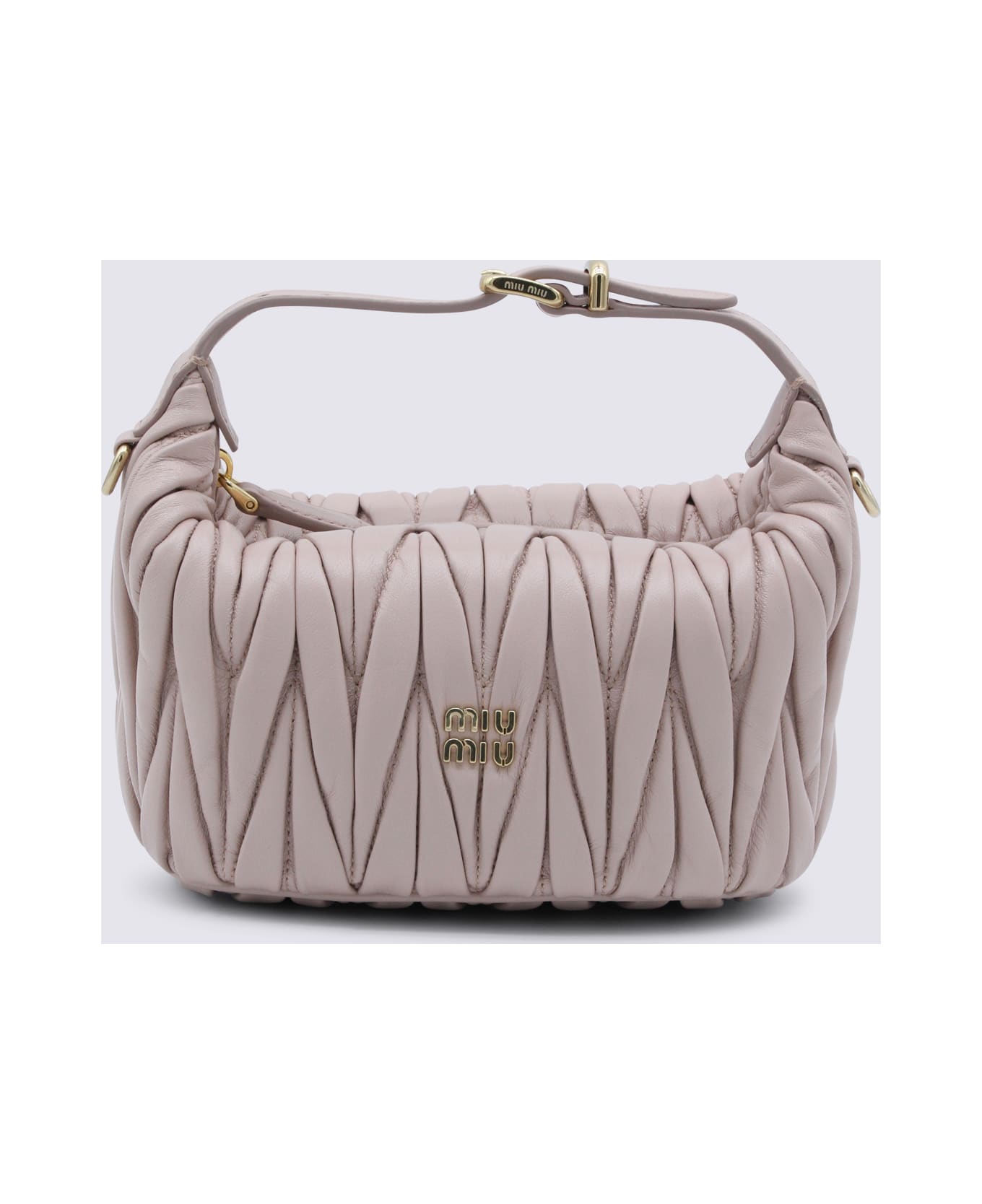 Pink leather mini bag from Miu Miu featuring top handle, zip fastening, main compartment, internal zip pocket, golden hardware,frontal logo detail and all over details. Composition: _, 100% Lamb