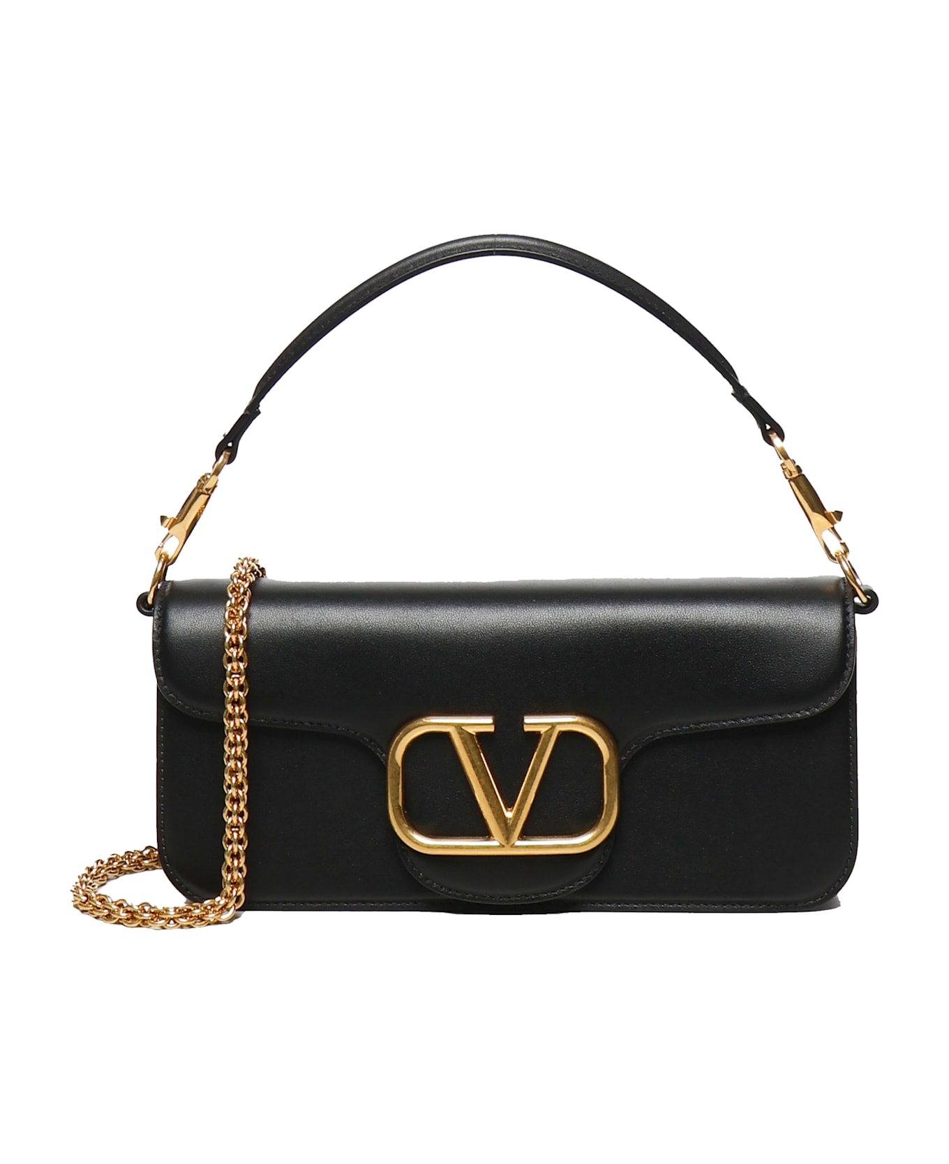 -Bag with handle and chain with possibility to be worn shoulder/hand or cross-body -Metal parts antique brass finish -Magnetic closure -Removable handle in leather -Shoulder strap with removable sliding chain -Nappa lining. Inside: a flat pocket -Height (light) shoulder: min 26 cm - max 50 cm -Dimensions: 27 x 13 x 6 cm -Colour: Black