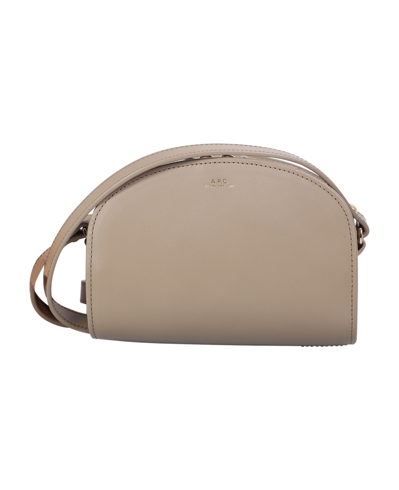 Curve-edge body. Engraved logo. Top zip fastening. Main compartment. Adjustable shoulder strap. Color: beige